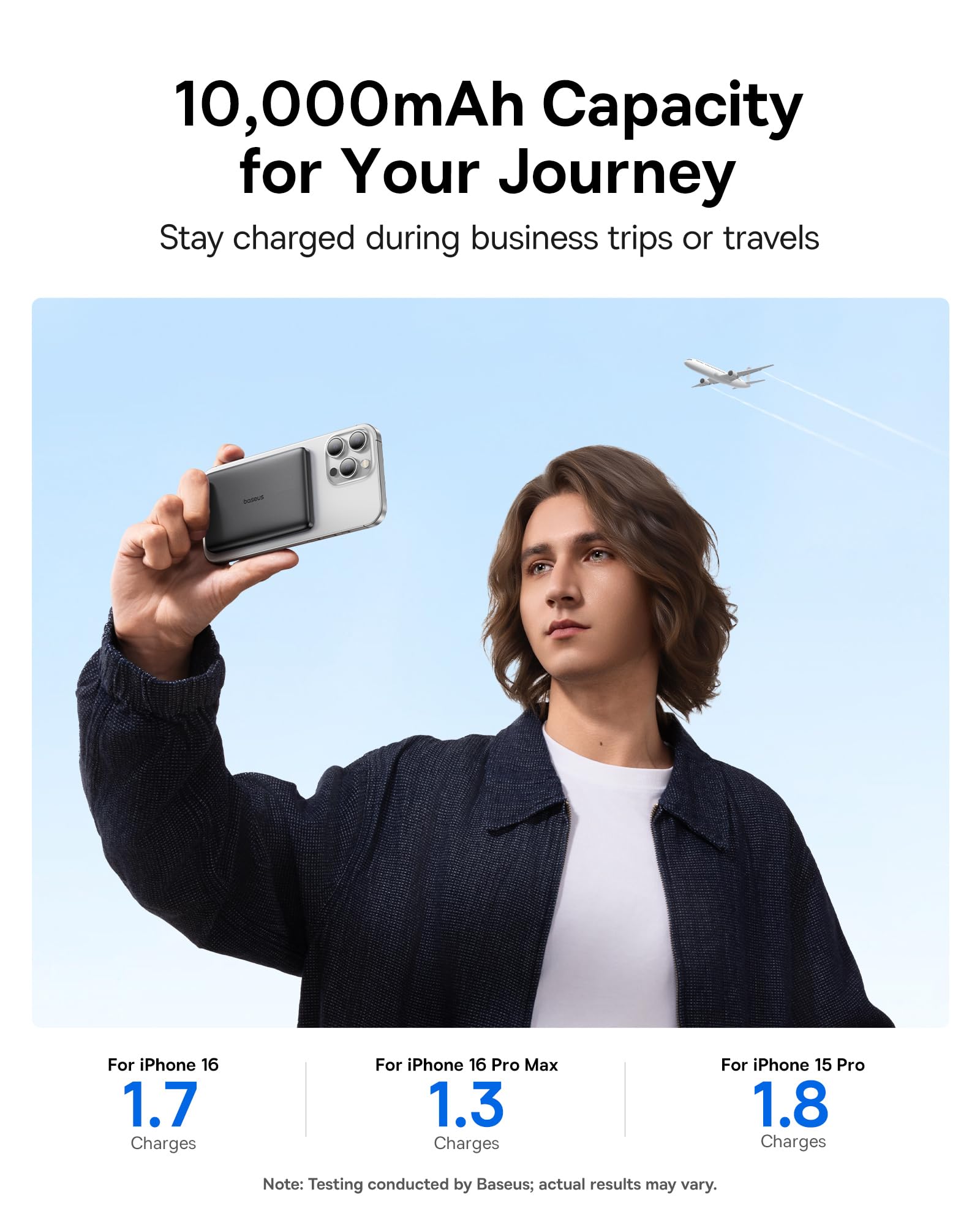 🔋【10,000mAh, Full of Power All Day】With a large 10,000mAh capacity, it keeps your devices fully charged all day long. This qi2 charger can charge your iPhone 16 Pro Max to 49% in just 30 minutes via the 27W USB-C port, provides extra power when you need it most, eliminating the anxiety of low battery. Reminder: It’s the thinnest and lightest Qi2 10,000mAh power bank on the market, you never have to worry about running out of battery again.