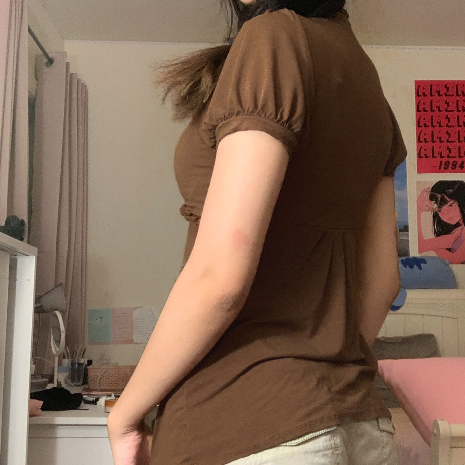 Design: The grunge shirt is in a little see-through black/Brown colour, the little strings can be tied in the front or the back, super cool vintage goth short-sleeve top from 90s/y2k.