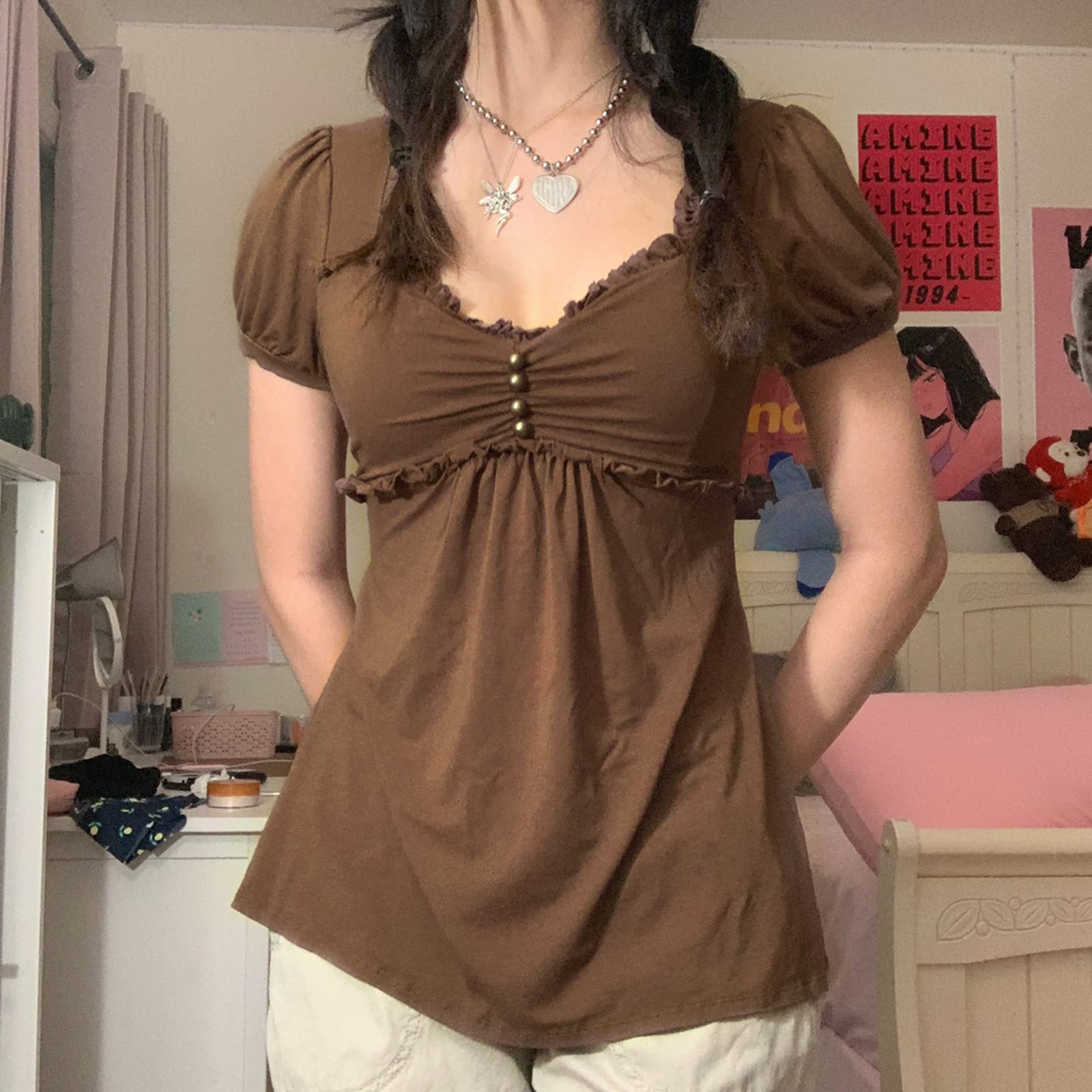 Material: Y2k vintage fairy grunge top made of high quality polyester fabric, breathable, stretchy, skin-friendly, comfortable to wear.