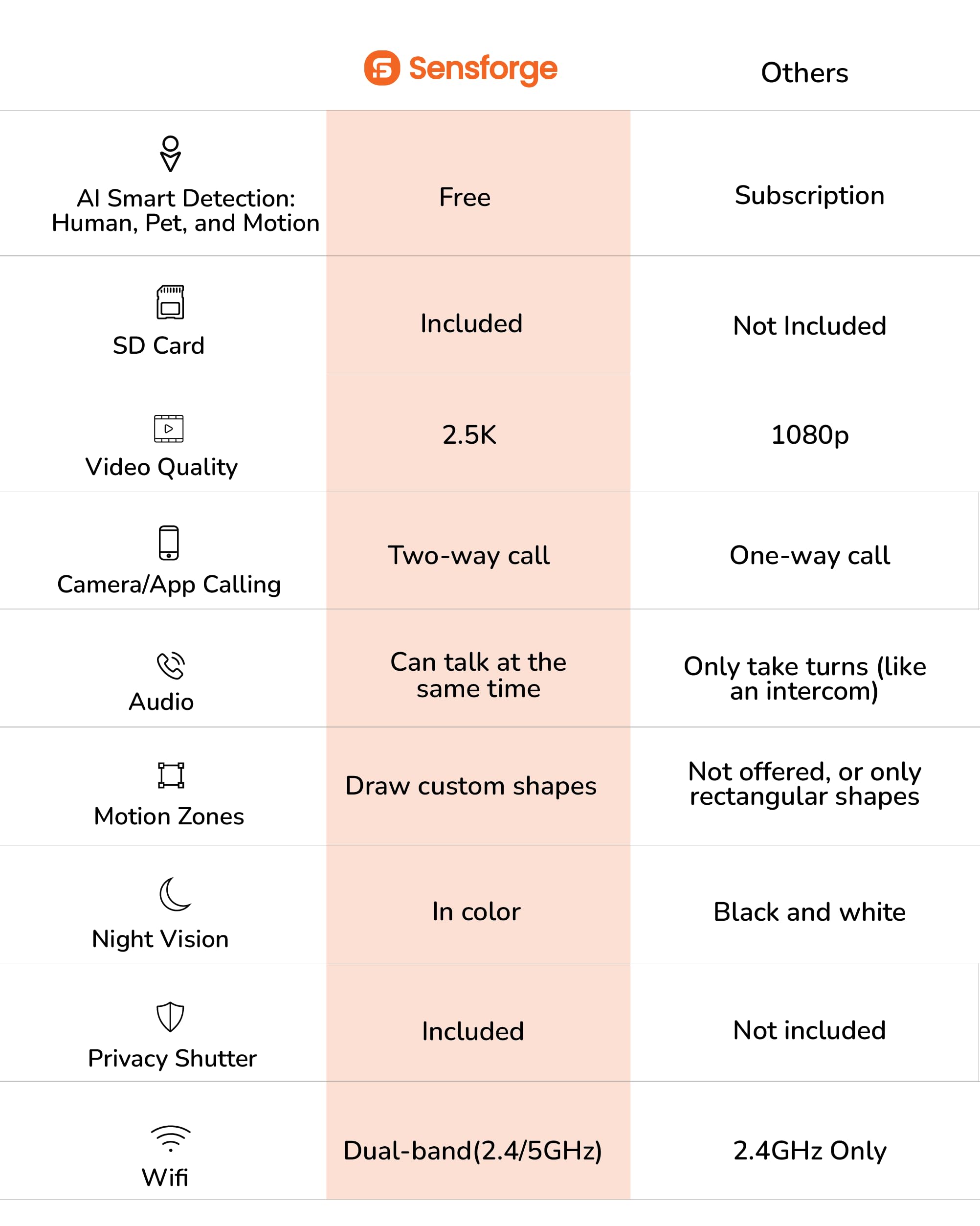 ✅ [Two-Way Audio & Instant Notifications] Stay connected in real time. Speak and listen through the Sensforge app or camera, enabling seamless communication with family members, pets, or visitors—even when you’re away.