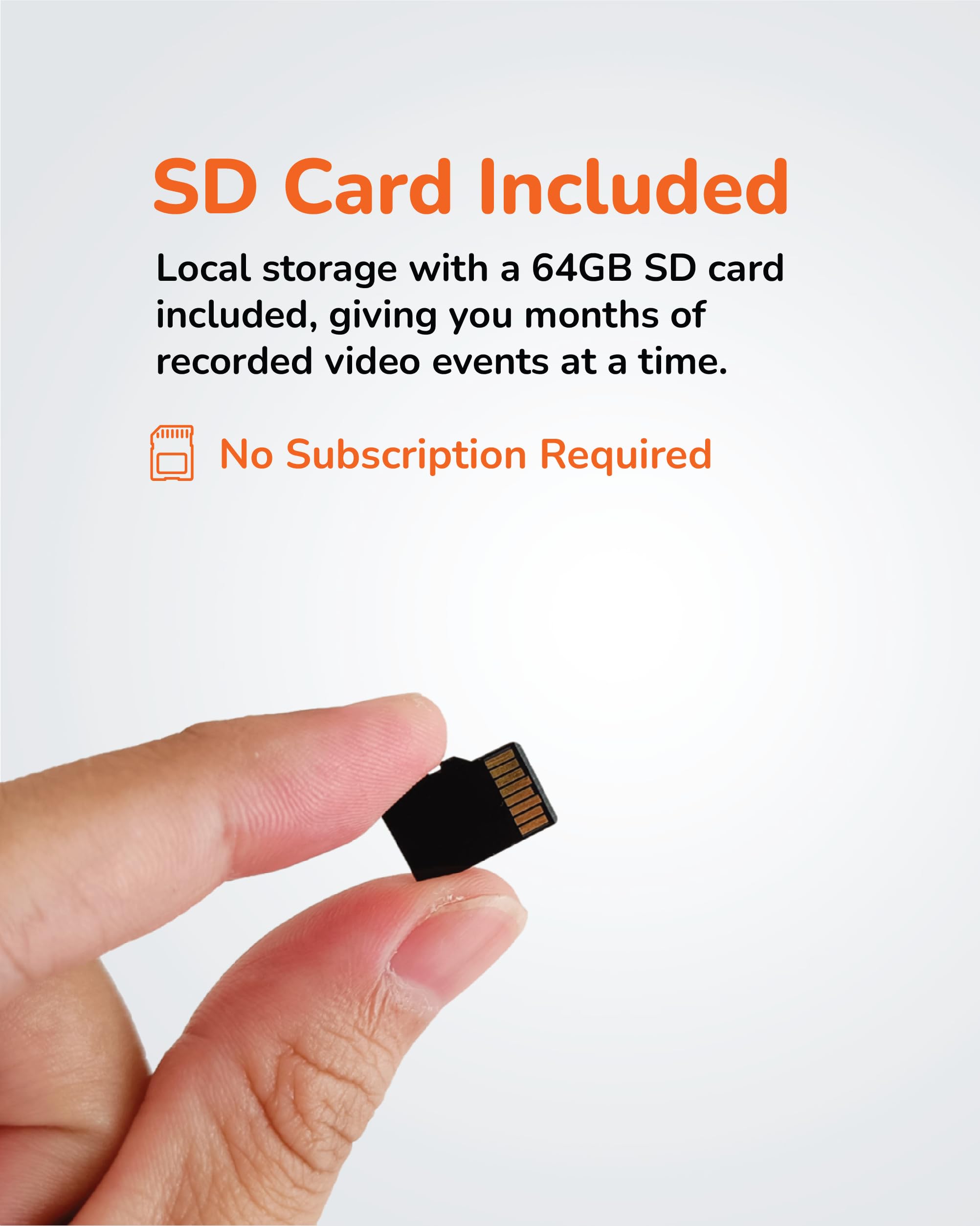 ✅ [No Monthly Fees – 64GB SD Card Included] Start recording right away with the pre-installed 64GB SD card for local storage. Keep your footage private and secure without relying on costly cloud subscriptions.