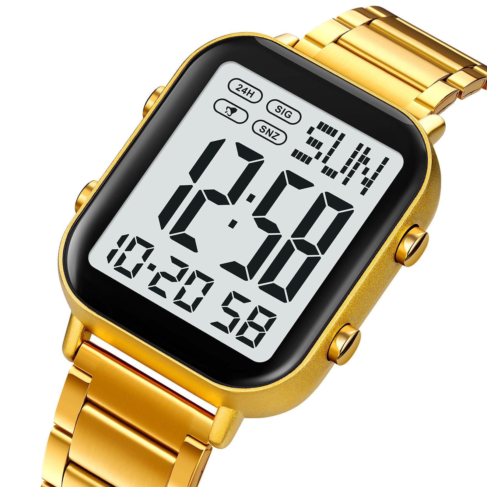 Description This men's stainless steel digital watch fuses a sleek, modern aesthetic with all-around practical functionality, making it an ideal choice for daily casual wear and various sports activities alike. Crafted with a durable zinc alloy case and a premium stainless steel band, it strikes a perfect balance between sturdiness and subtle sophistication, elevating any outfit with a refined touch. Boasting a 30-meter water resistance rating, it stands up to daily water exposure like handwashing and splashes, ensuring reliable performance in diverse daily conditions. Designed with a classic rectangular dial, this watch is packed with user-friendly features to meet all your timekeeping needs: dual time zones for frequent travelers, a precise stopwatch for sports and timing tasks, clear date display, adjustable alarm, countdown timer, and switchable 12/24-hour format. The scratch-resistant hardened mineral glass mirror enhances its long-lasting durability, protecting the dial from daily scuffs and wear, while the luminous display allows for easy time reading in low-light or dark environments—combining style and practicality in every detail. Engineered with a high-precision electronic movement, it delivers accurate and stable timekeeping at all times. The watch is built to withstand tough outdoor use while offering a comfortable, secure fit on the wrist for all-day wear. More than just a functional timepiece, it’s a stylish everyday accessory that suits casual, sporty, and semi-casual occasions, making it an essential companion for the modern man’s lifestyle. Key Features 30-meter water resistance for daily water exposure (handwashing, splashes) Scratch-resistant hardened mineral glass mirror for long-term durability Luminous display for easy time reading in any lighting condition Multi-functional design: dual time zones, stopwatch, date display, alarm, countdown timer, 12/24-hour format Durable zinc alloy case + premium stainless steel band for sturdiness and sophistication High-precision electronic movement for accurate timekeeping Comfortable adjustable fit, suitable for daily wear & outdoor sports Specifications Dial Shape: Rectangular Glass Material: Scratch-resistant Hardened Mineral Glass Watch Case: Zinc Alloy Watch Band: Stainless Steel Band Buckle Type: Standard Buckle Case Diameter: 37 mm Case Thickness: 10.5 mm Band Length: 230mm (Adjustable) Band Width: 20mm Net Weight: 108.2g Movement Type: Electronic Movement Important Notes DO NOT press any buttons underwater to avoid water leakage Avoid using the watch in extreme hot or cold temperatures If mist, fog or water droplets are found inside the watch surface, contact the manufacturer immediately for professional maintenance to prevent moisture corrosion of internal components