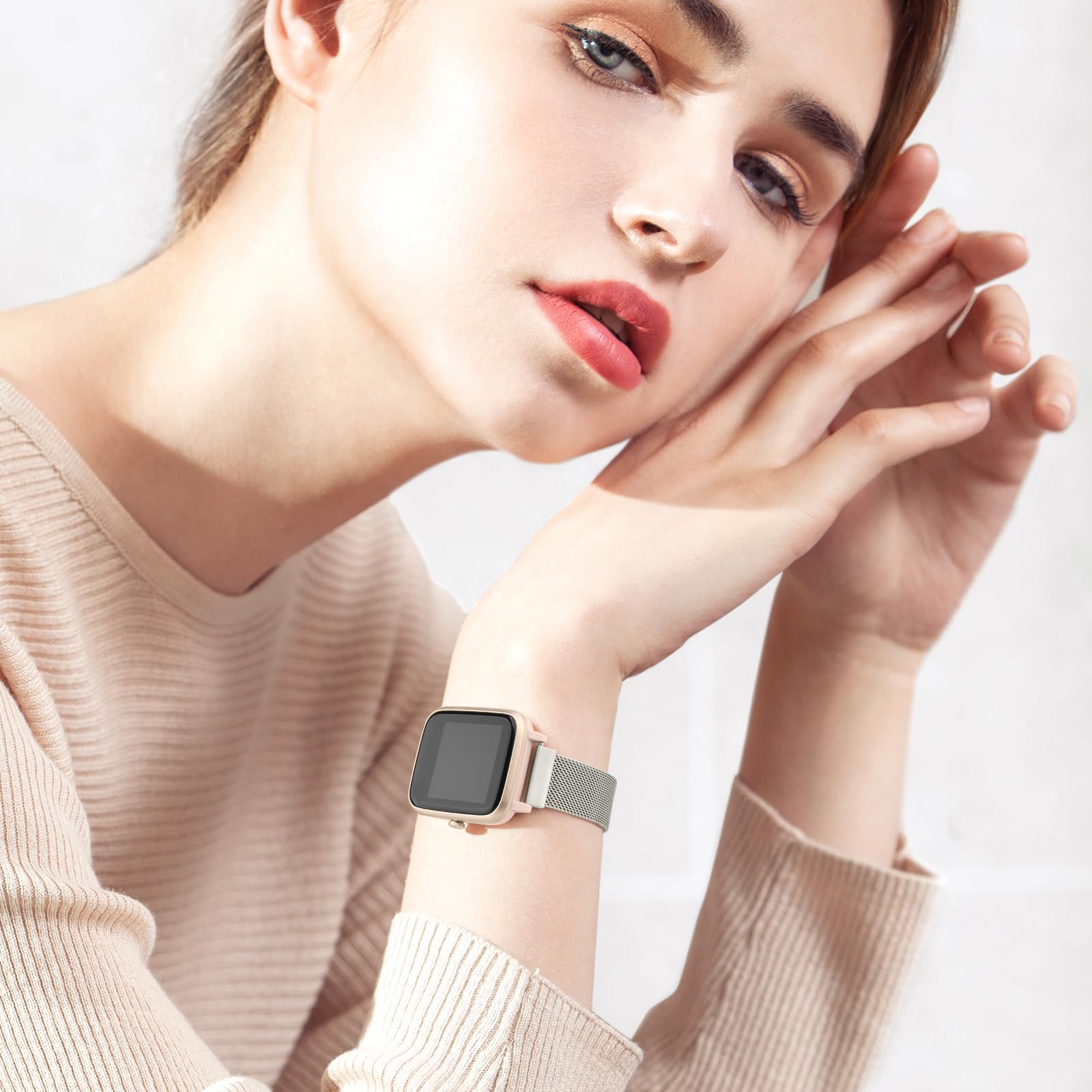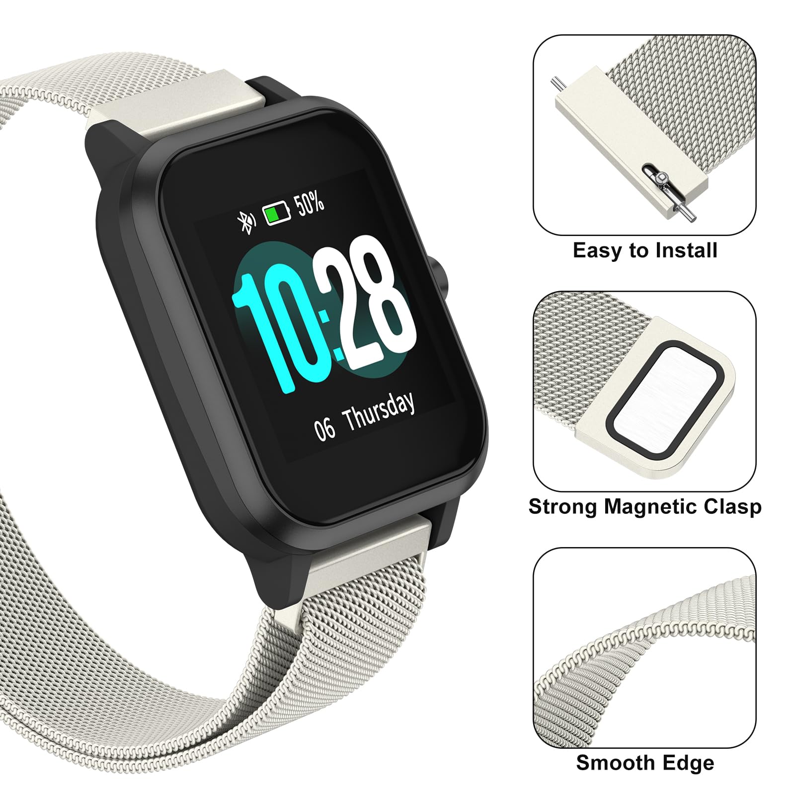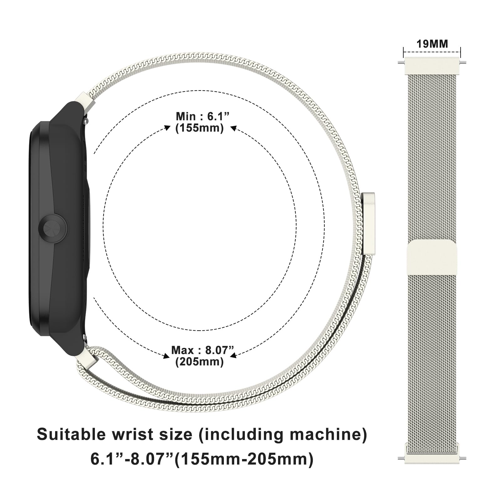 【Premium Material】Our 19mm metal watch strap is made of great quality woven mesh stainless steel, wrist-friendly, comfortable, breathable, waterproof and durable, a great affordable option for your smartwatch accessories. One Size for 5.5" -8.3" (140mm-211mm) wrist. Size can be adjustable with buckle. And multi colors for you choices.