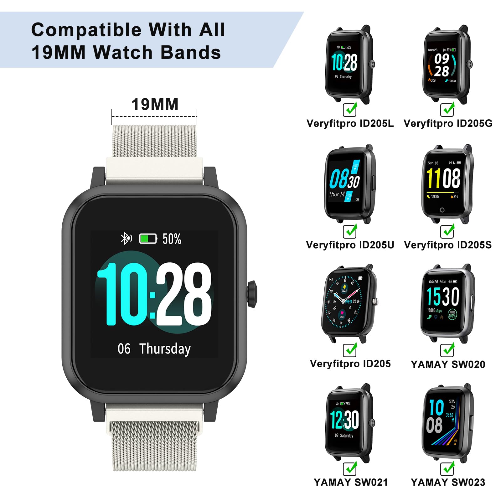 【19mm for More Models】Fit Letsfit/LETSCOM/TEMINICE/Lintelek/LIFEBEE ID205, ID205L, ID205G, ID205S, ID205U; GRDE ID205S, ID205L; Blackview SW01/SW02; Casio W-71/W-86; UMIDIGI Uwatch 3/Uwatch GT/Umidigi UFit etc.