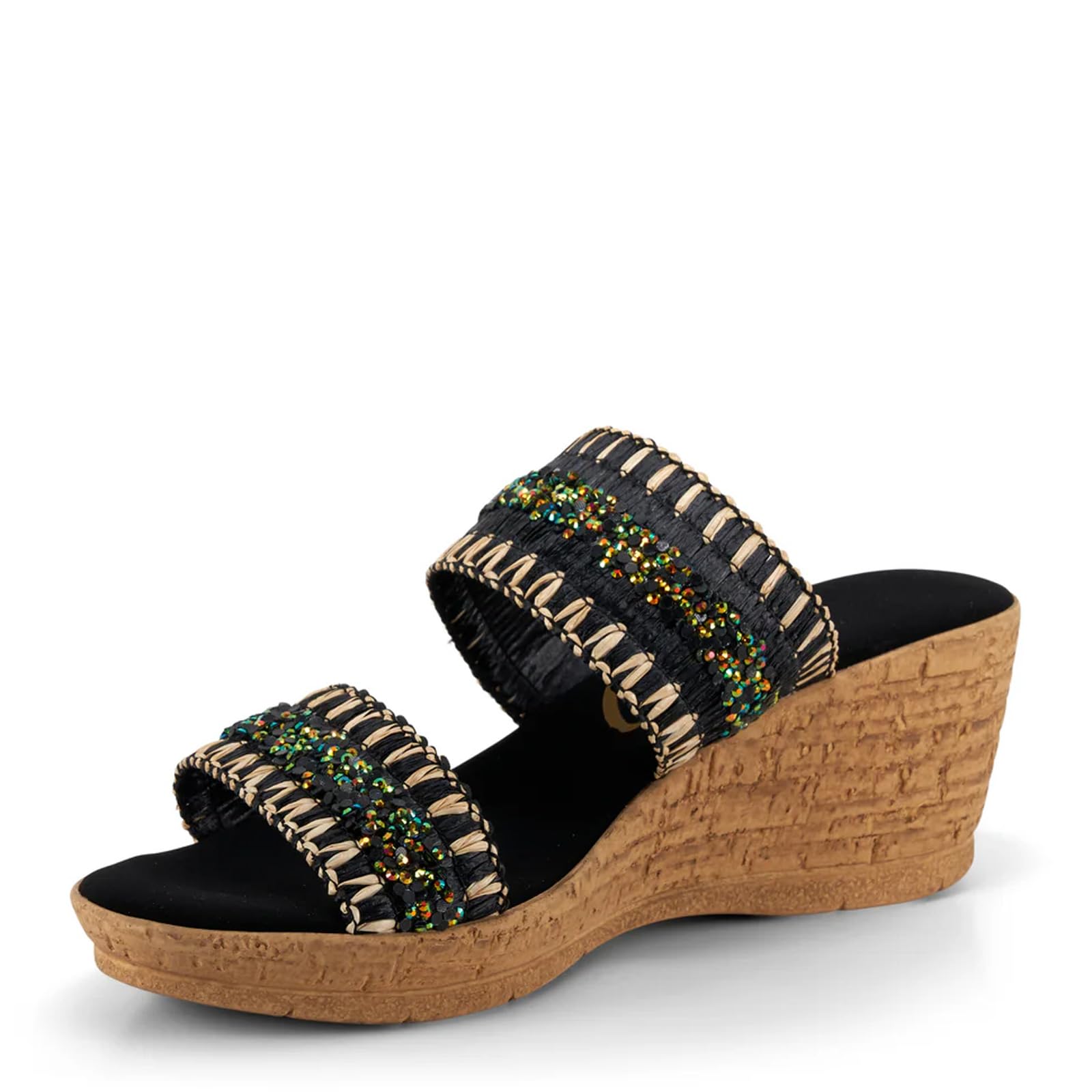 Cork print 2.25-inch wedge heel with a ¾-inch platform