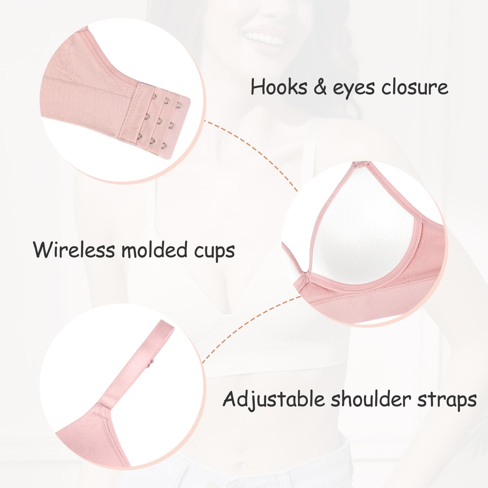 Comfortable fit: 3 hook & eyes are convenient for daily wear. Adjustable straps stay in place during each movement.