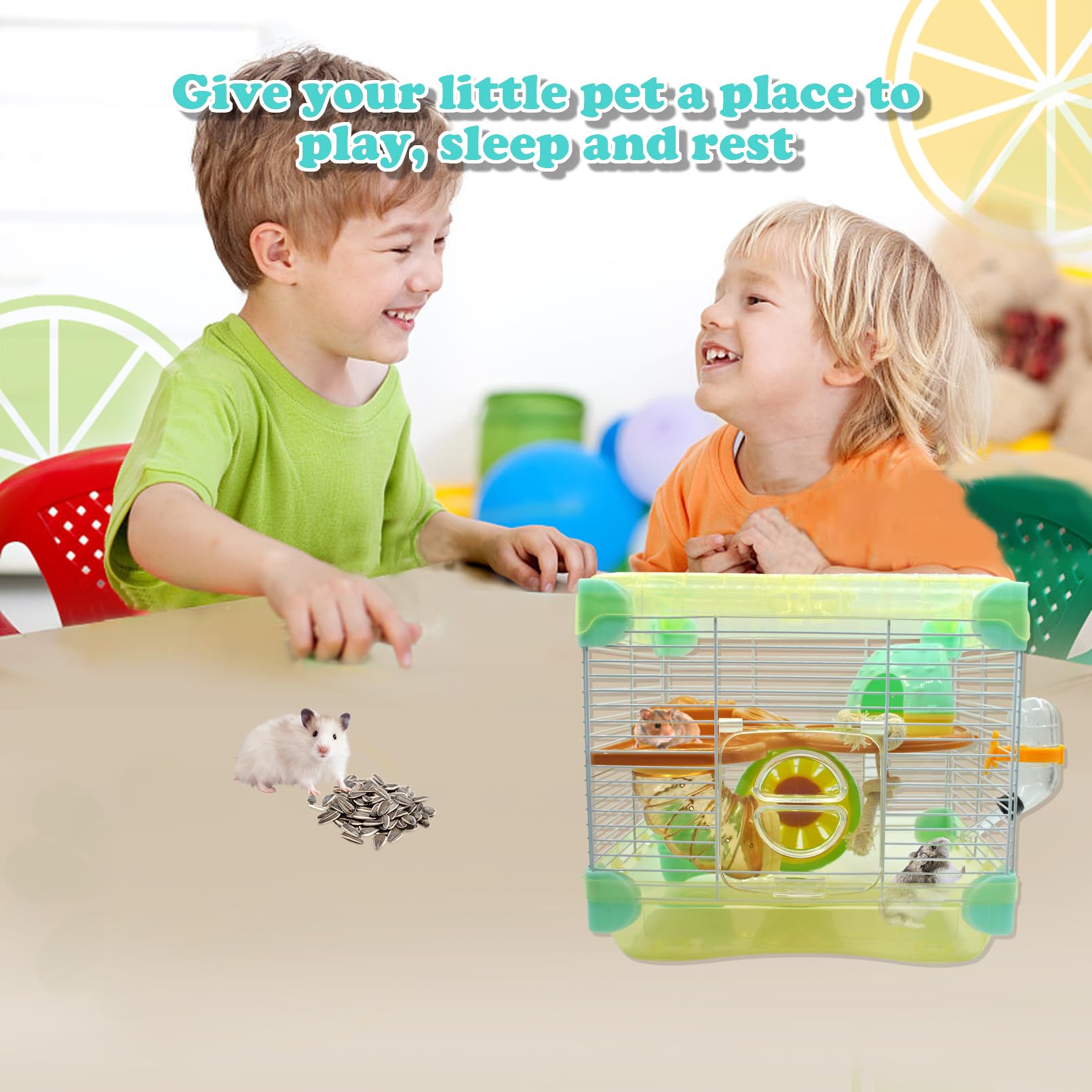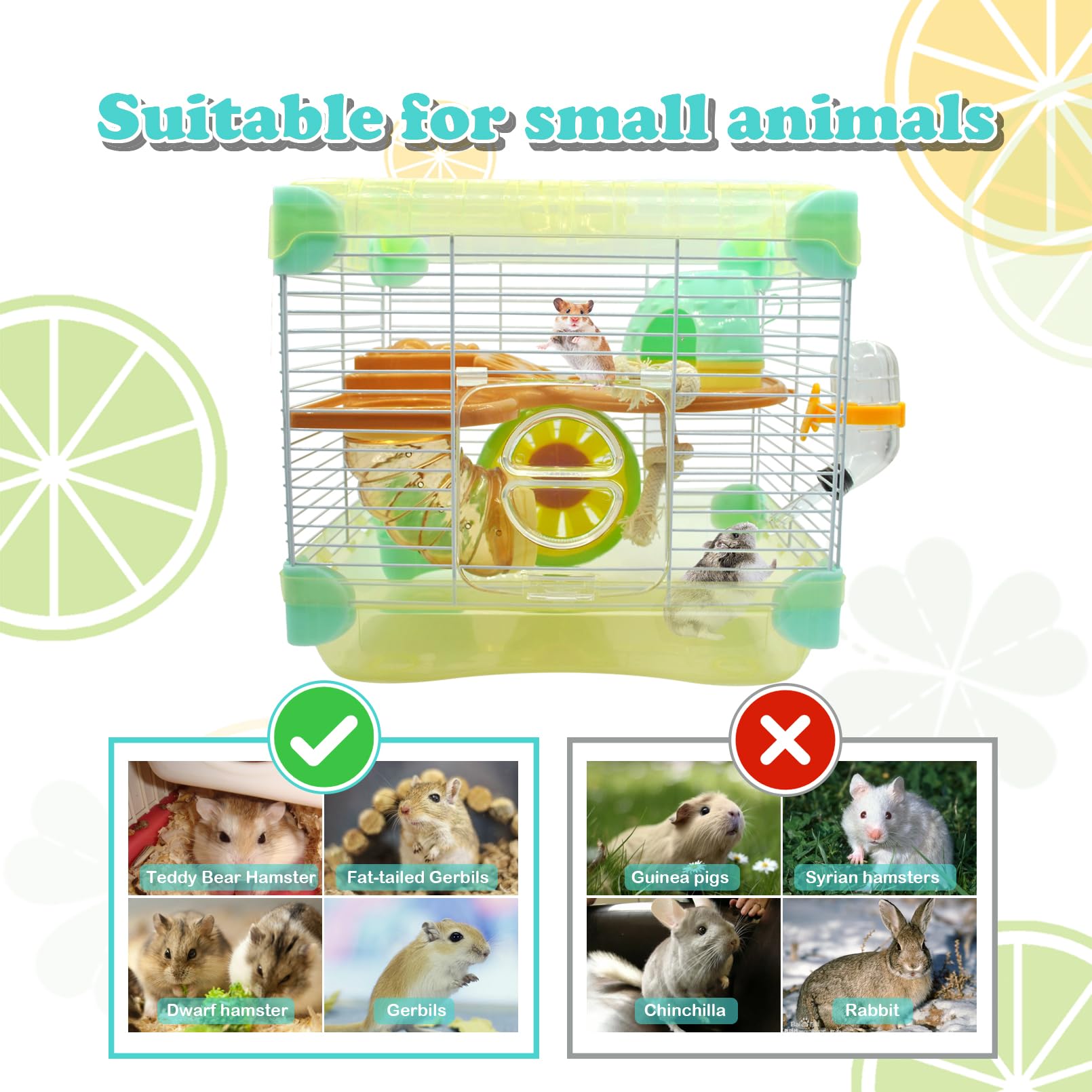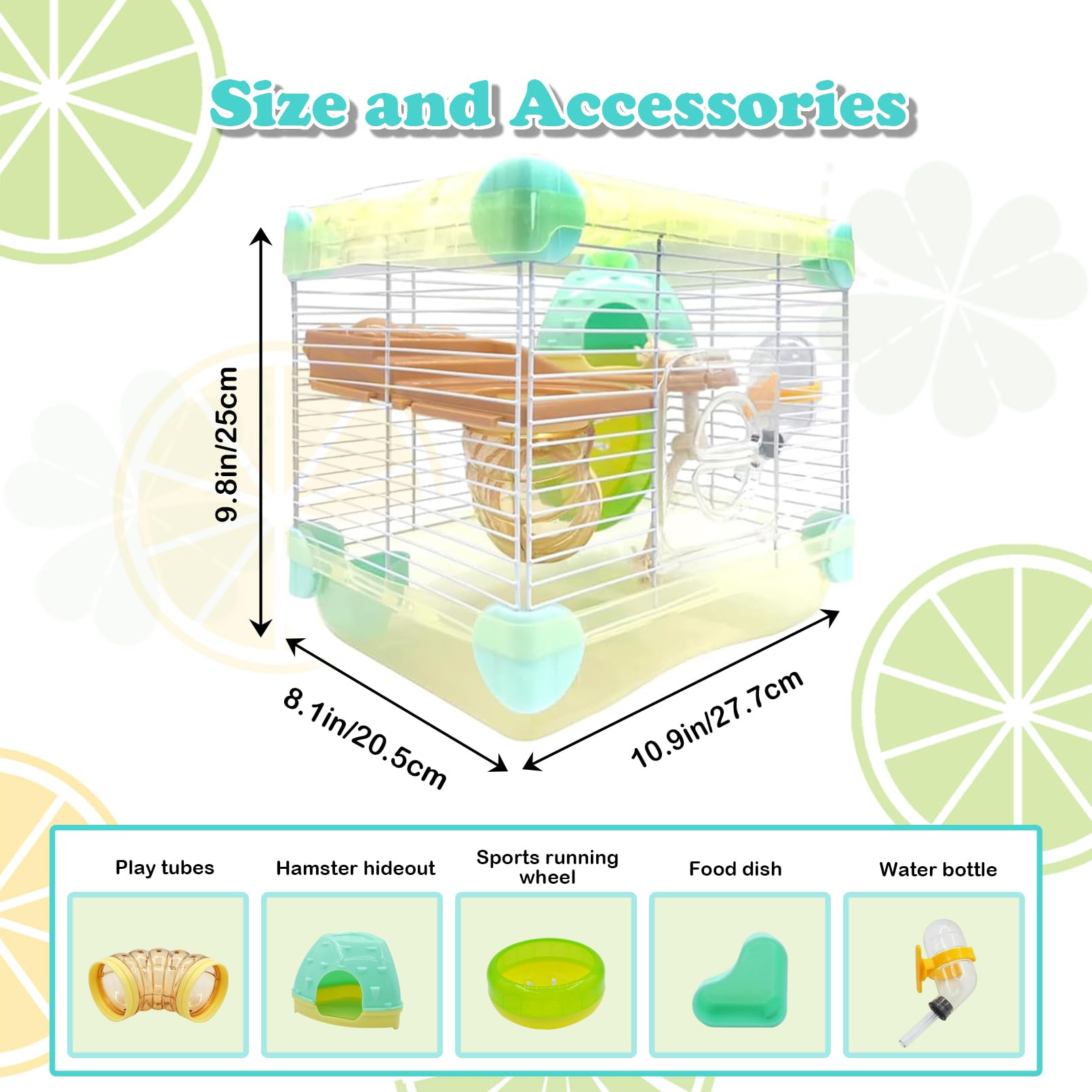 Product size:Hamster cages measures 10.9x8.1x9.8in/27.7x20.5x25cm 2-level design make for more exercise space and excellent ventilation. suitable for small hamsters, baby hamsters, dwarf hamsters, miniature gerbils and other smaller animals