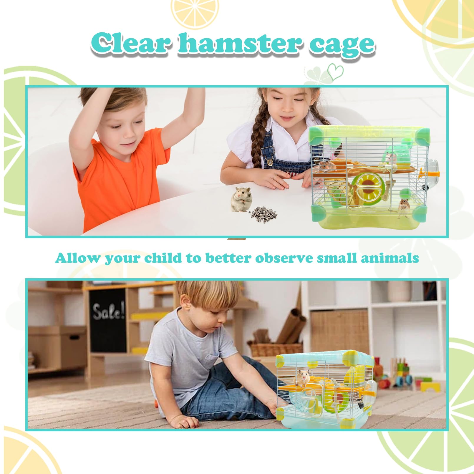 High quality and safety:Hamster cages and habitats has a sturdy structure, made of powder-coated metal and steel wire, Top and bottom made of PP plastic, Material safety and non-toxic. This is absolutely safe for your small pet