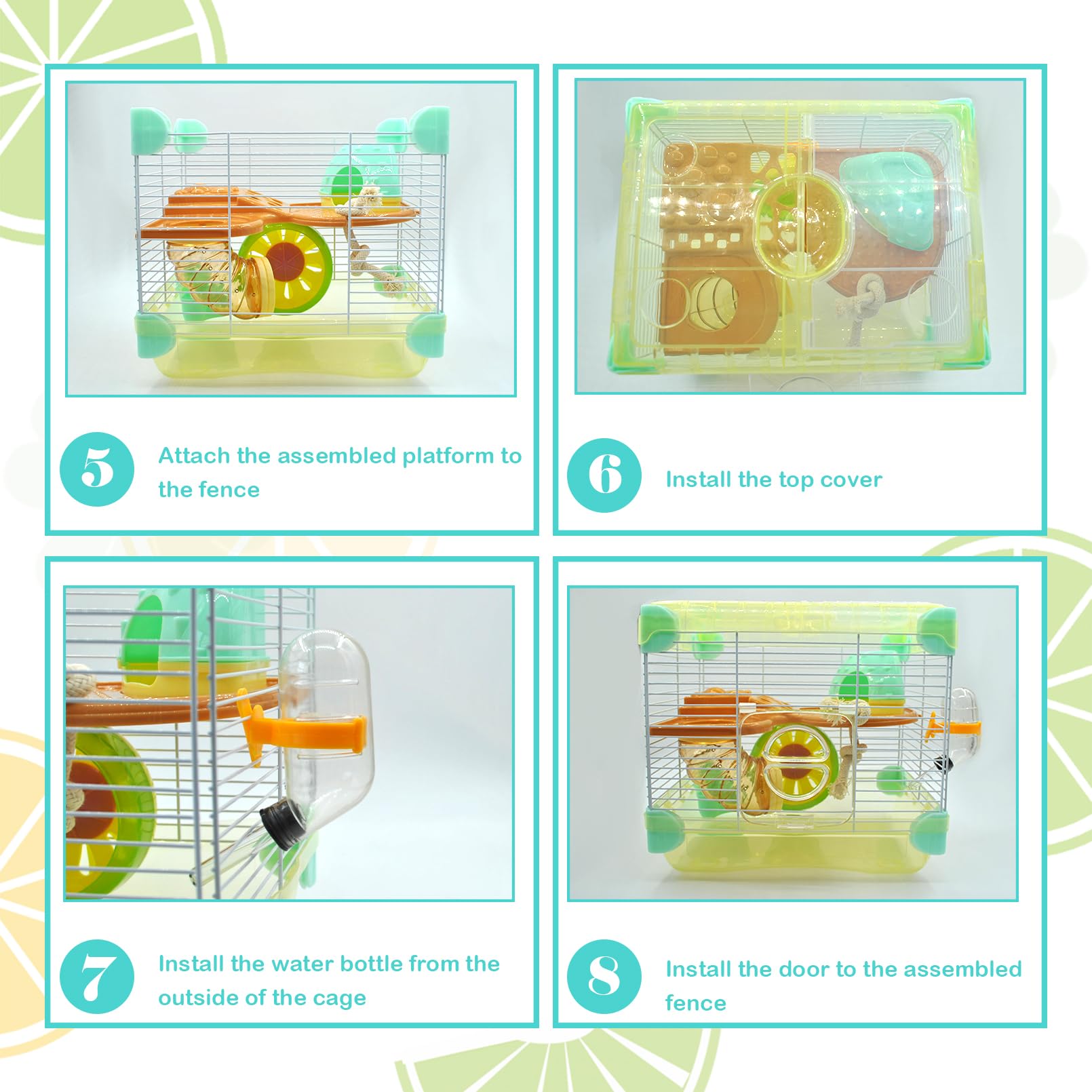 Easy to clean:Iron wire frame can be easily cleaned. Detachable upper cover and plastic bottom tray for ease of daily feeding and changing accessories.And place your pet favorite items to create a unique hamster house