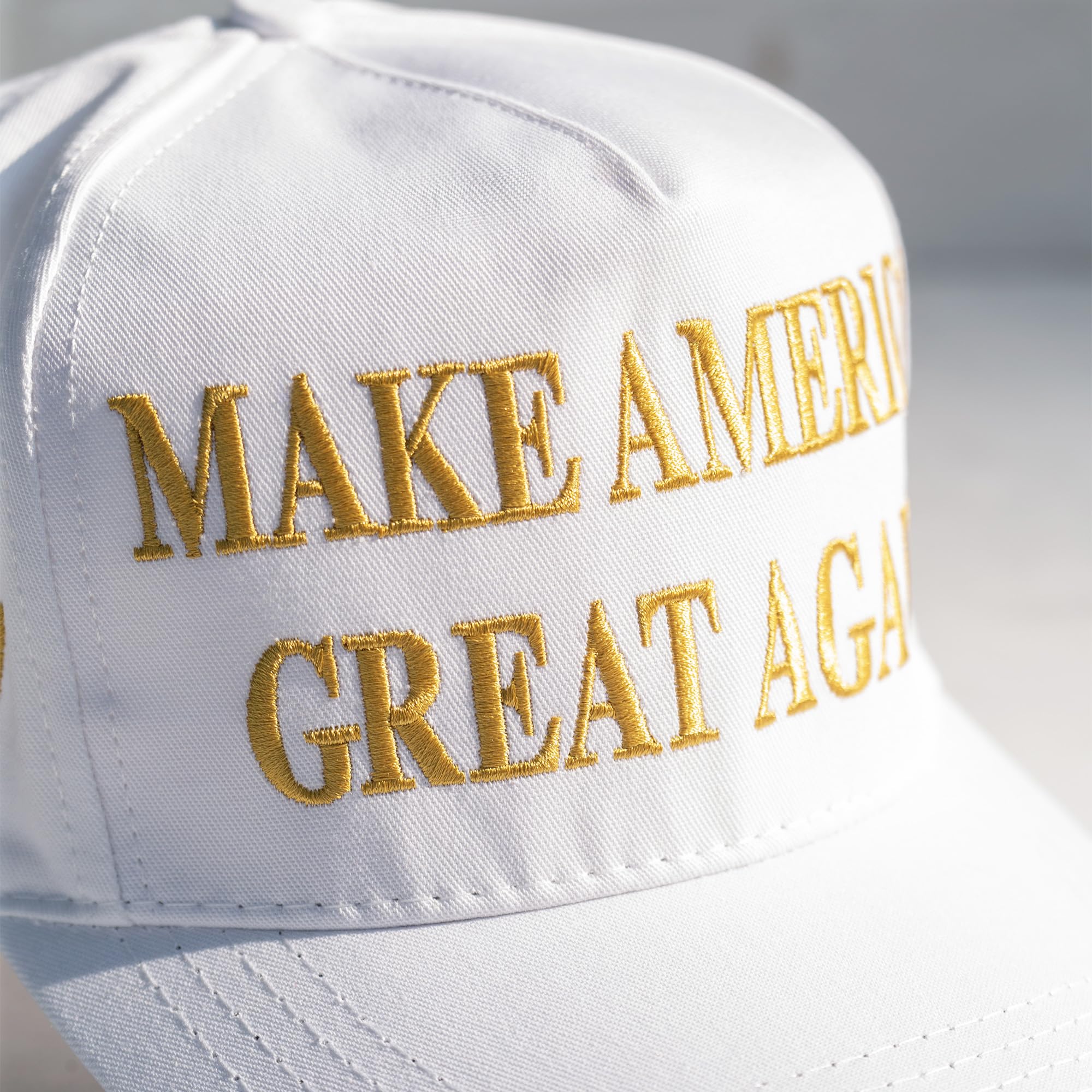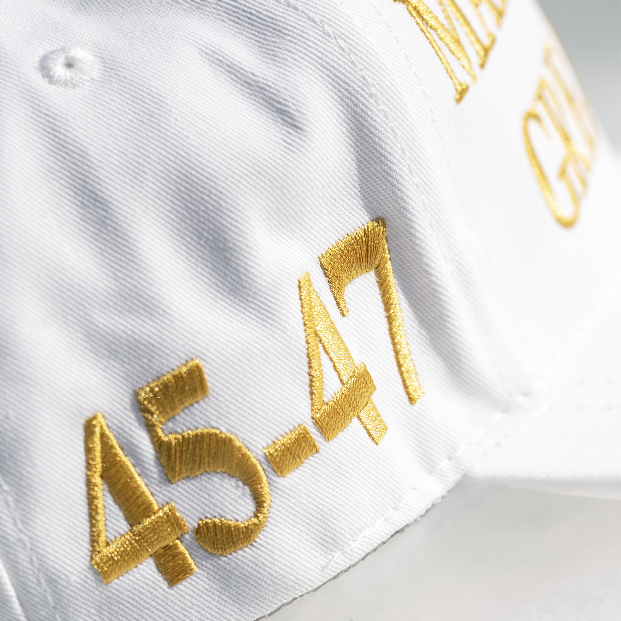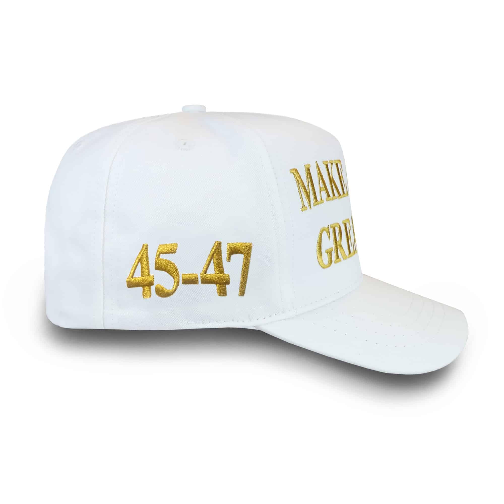 Premium Embroidery: Features the iconic Make American Great Again slogan prominently stitched on the front, with 45-47 and American flag logo on each side for a patriotic statement