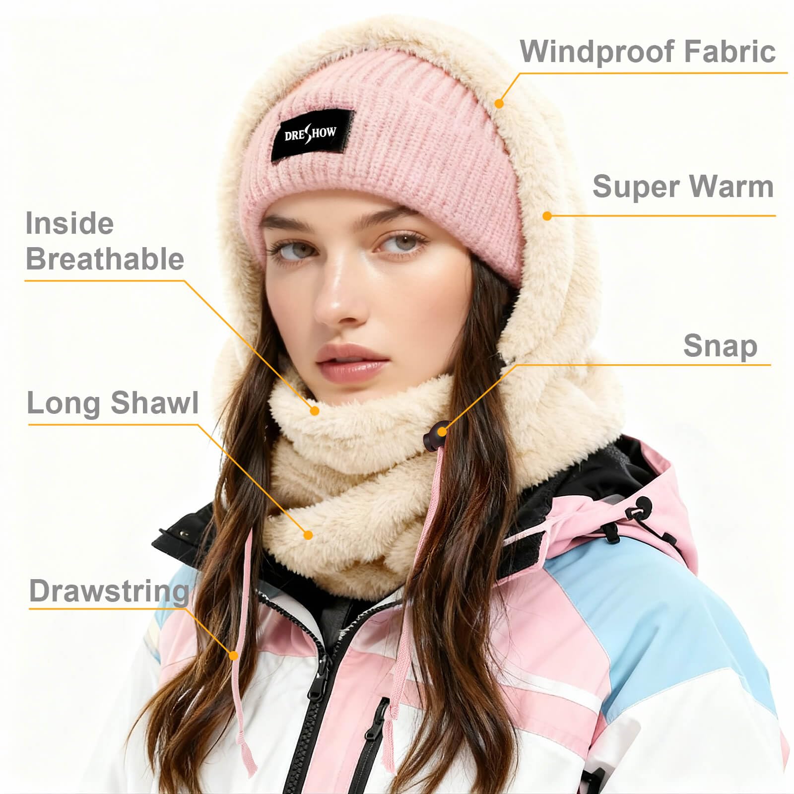 Cold Wind Resistance: Featuring an integrated hood design, the fleece hooded scarf hat can cover the head, neck and even the face, blocking cold air intrusion from all directions and effectively locking in warmth. It maintains continuous warmth for the head and neck in low-temperature environments.