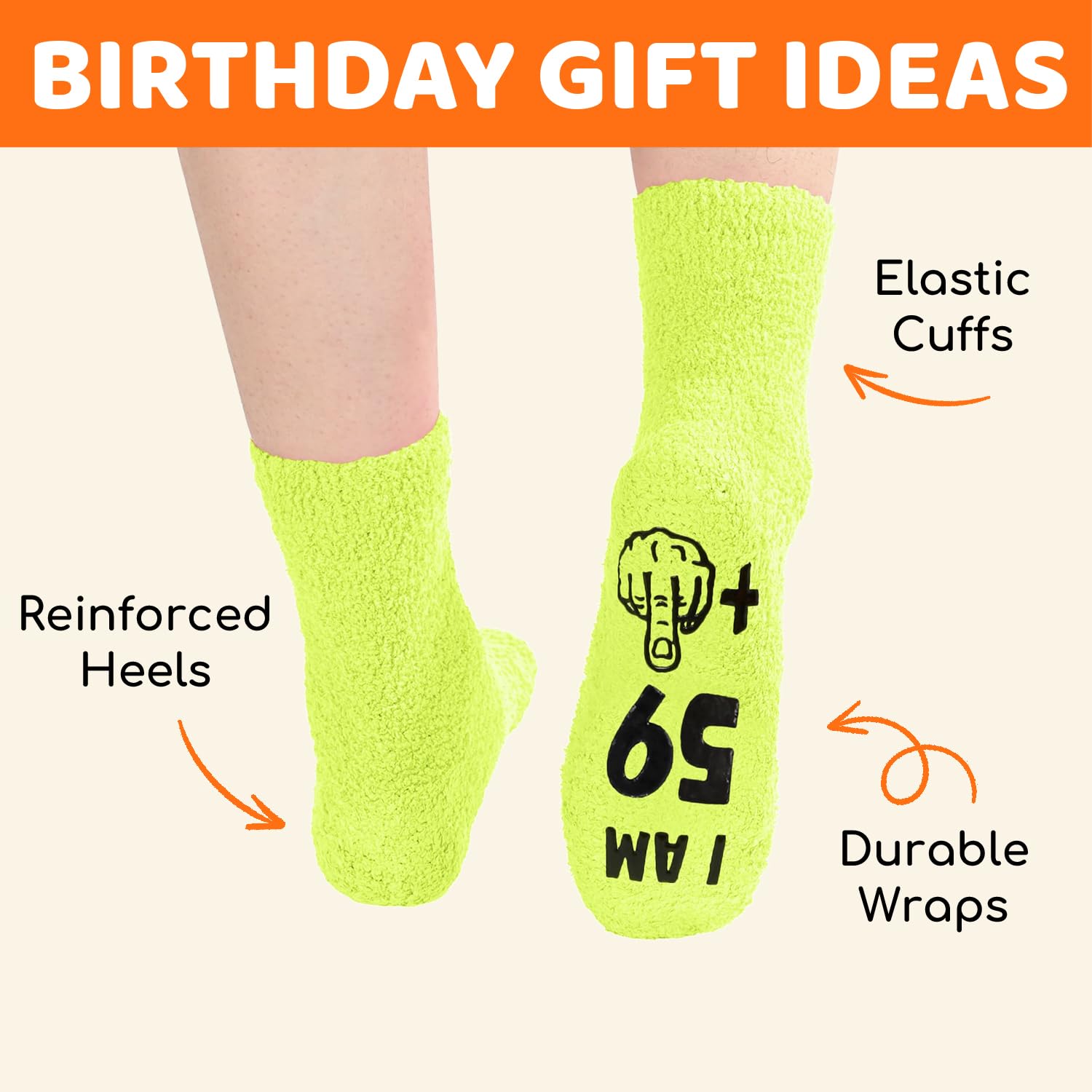 60TH BIRTHDAY GIFT IDEAS: "I AM 59+1." Say it with socks - These are suitable for any holiday gifts, like Birthday gifts, Christmas gifts, or White Elephant gifts.