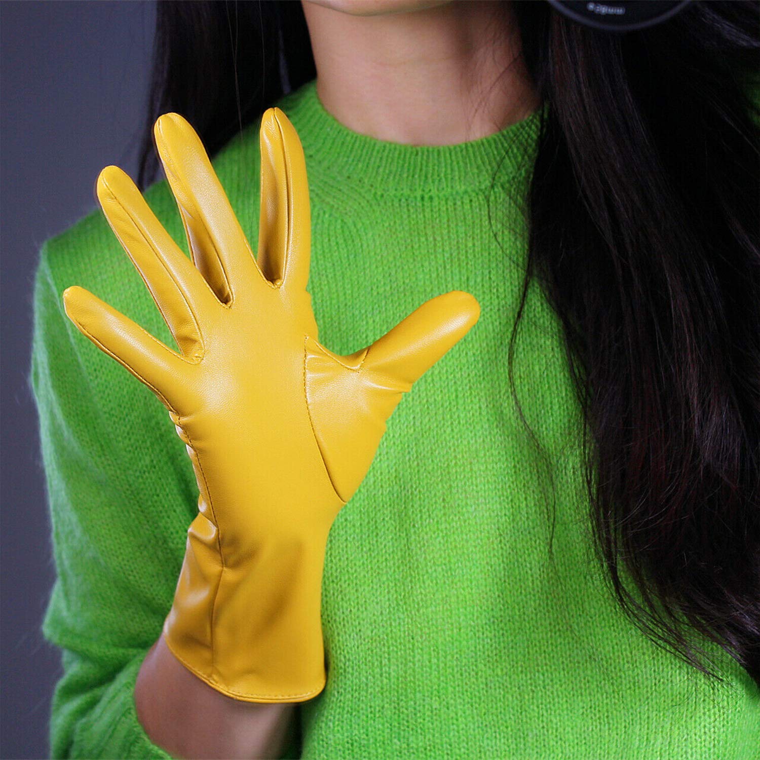 Classic and Fashion Design: our elegant leather gloves with bright pop of color,the look lively Warm and fairly elegant, impress others with sexy and charming. also keep your arms and hands warm enough from the cold weather.