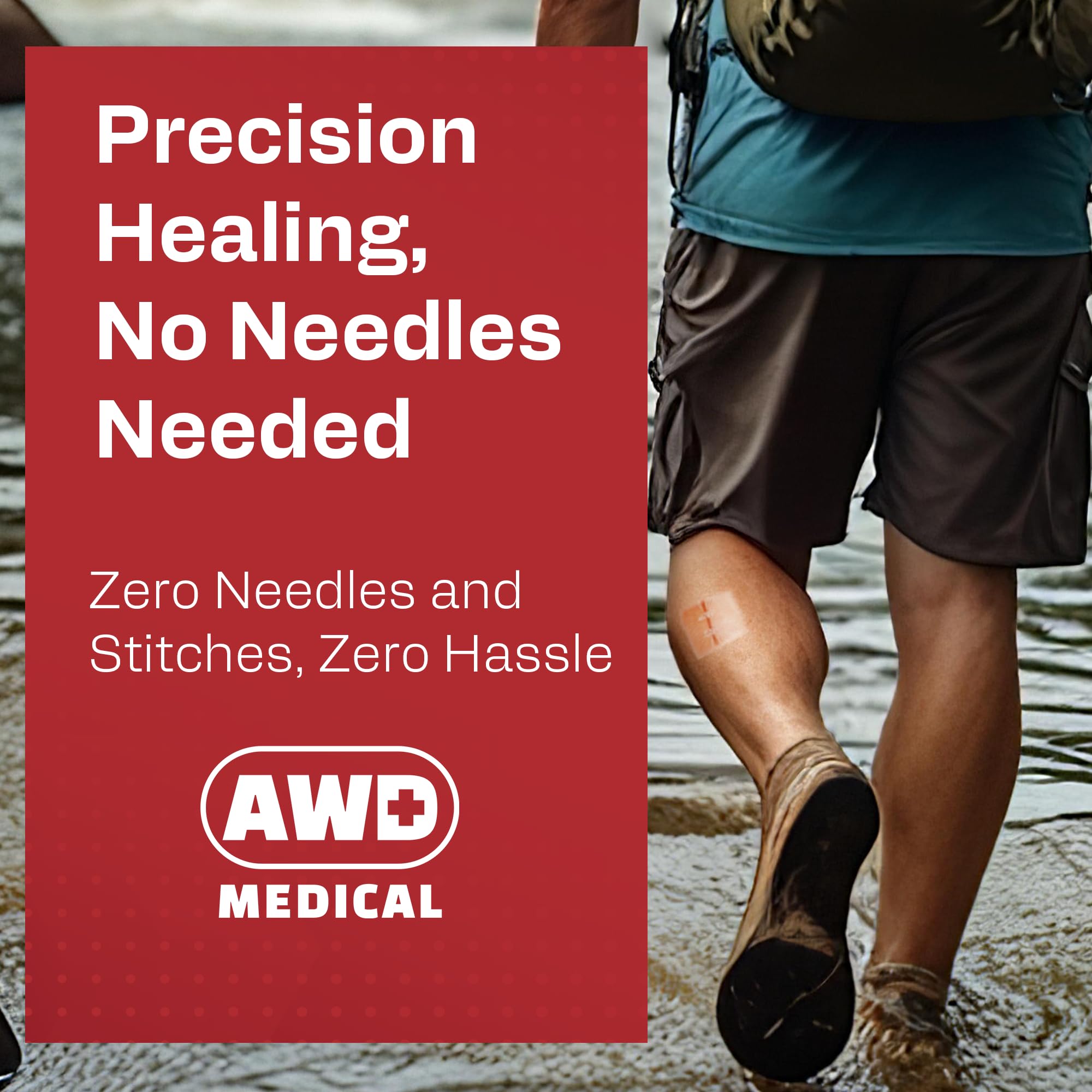 INSTANT WOUND CLOSURE: A cost-effective solution for small cuts and lacerations, quickly holding clean edges together for faster healing. Similar in concept to a butterfly bandage but with stronger, adjustable closure. Waterproof and breathable backing repels water, ideal for home or outdoor use.