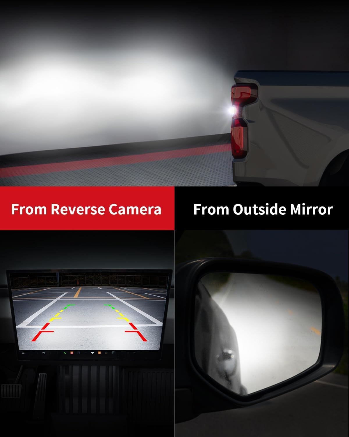 Super Bright LED Reverse Light for Enhanced Visibility:Equipped with high-performance 3030 SMD LED chips, this reverse light is significantly brighter than stock halogen bulbs, providing a clearer view when reversing. The 6000K cool white light extends visibility, ensuring safer driving at night or in poor weather conditions