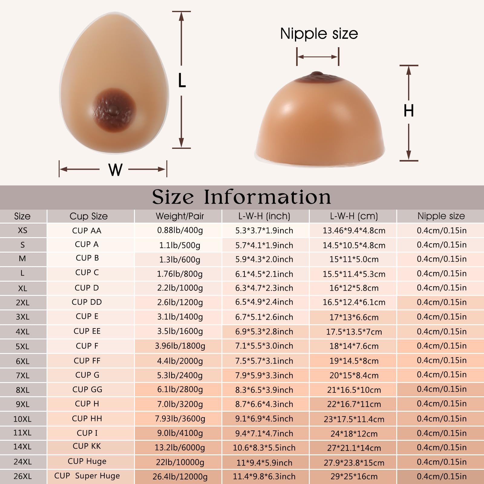 Cup HH,3600g/Pair, Package content: one pair siilicone breast forms, Avoid embarrassment as always. Your breast forms will be shipped discreetly in unmarked box,Do not remove the transparent protective film when you receive it. Put it in a pocket bra and wear it together