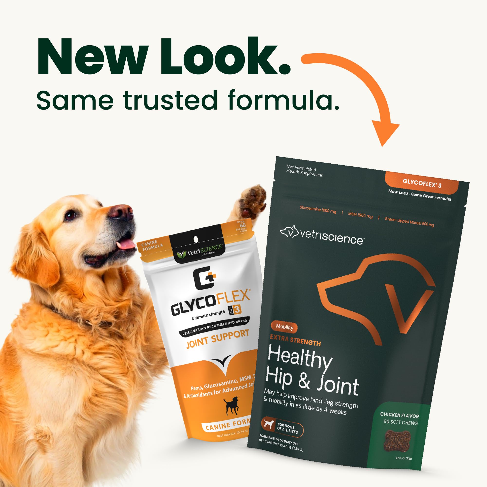 Glucosamine for Dogs: Extra Strength Healthy Hip & Joint (previously GlycoFlex Stage 3) is our advanced-strength hip and joint supplement for dogs, with powerful levels of active ingredients that work together to help maintain mobility, lubricate joints, and support flexibility