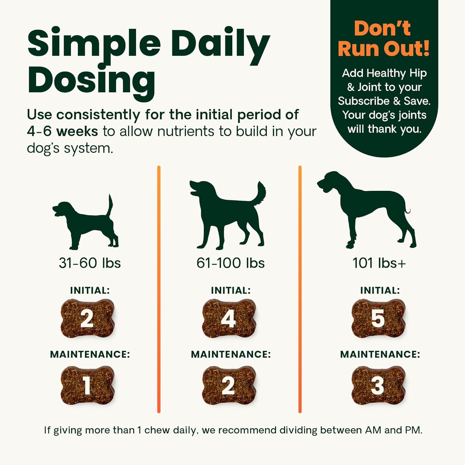 For Active & Senior Dogs: Bite-sized hip and joint chews are ideal for dogs that are slowing down or showing signs of fatigue or weakness in their hind quarters as well as active dogs, competitive dogs and dogs that are recovering from orthopedic surgery