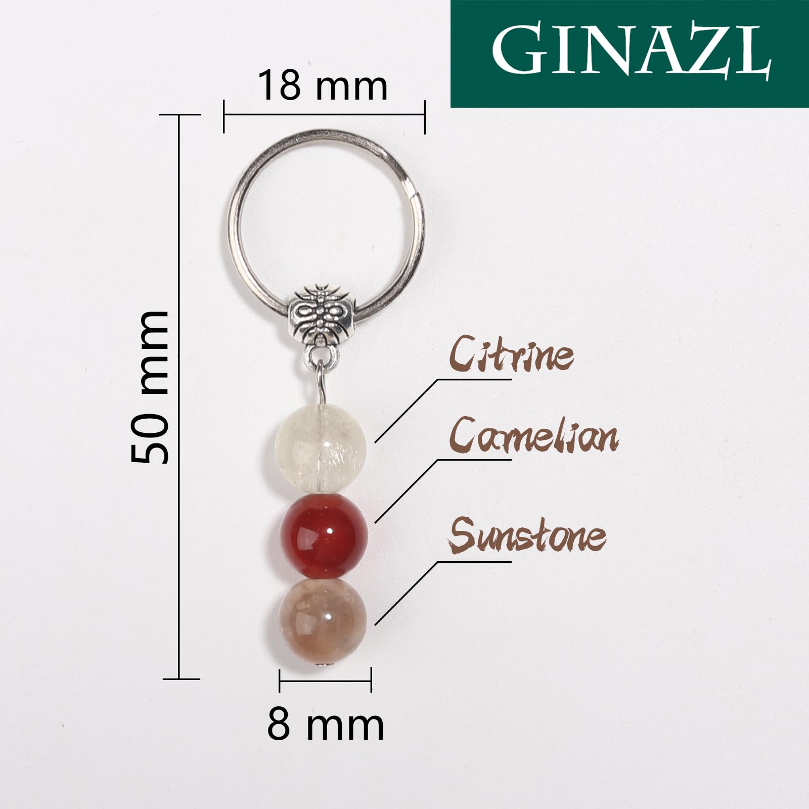 SIZE--Small keychain or keyring accessory, bead body diameter: 8mm, key ring outer diameter: 18mm. overall height: 50mm