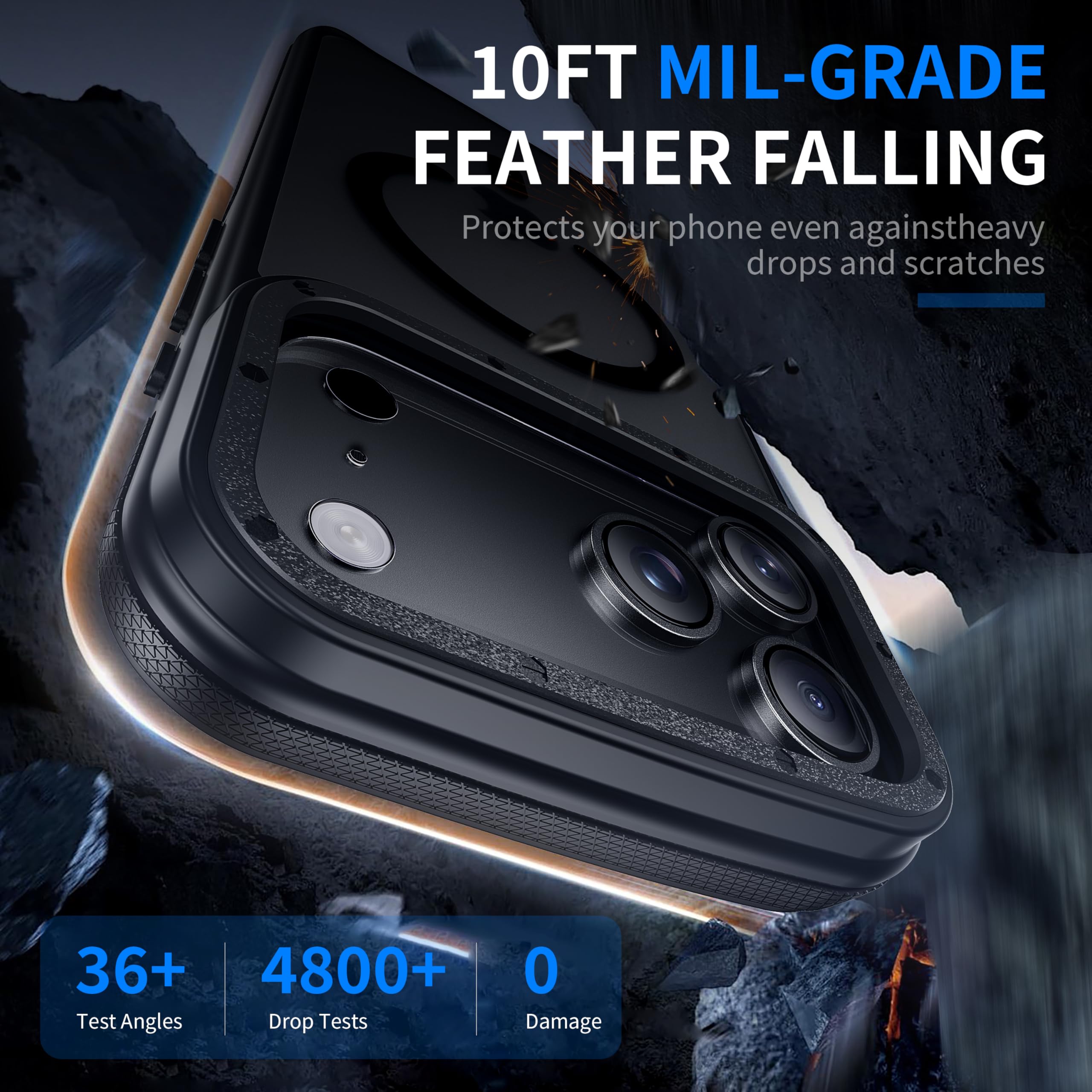 [10FT Military-grade Drop Protection]Our case ensures your phone stays safe from falls up to 10 feet high. With impact dispersion technology on all four corners, your phone is shielded from every angle. Featuring durable 24-ply TPU cushioning and an explosion-proof polycarbonate back, it's designed to withstand drops. Plus, the raised bezel around the camera and screen offer extra defense for crucial components.