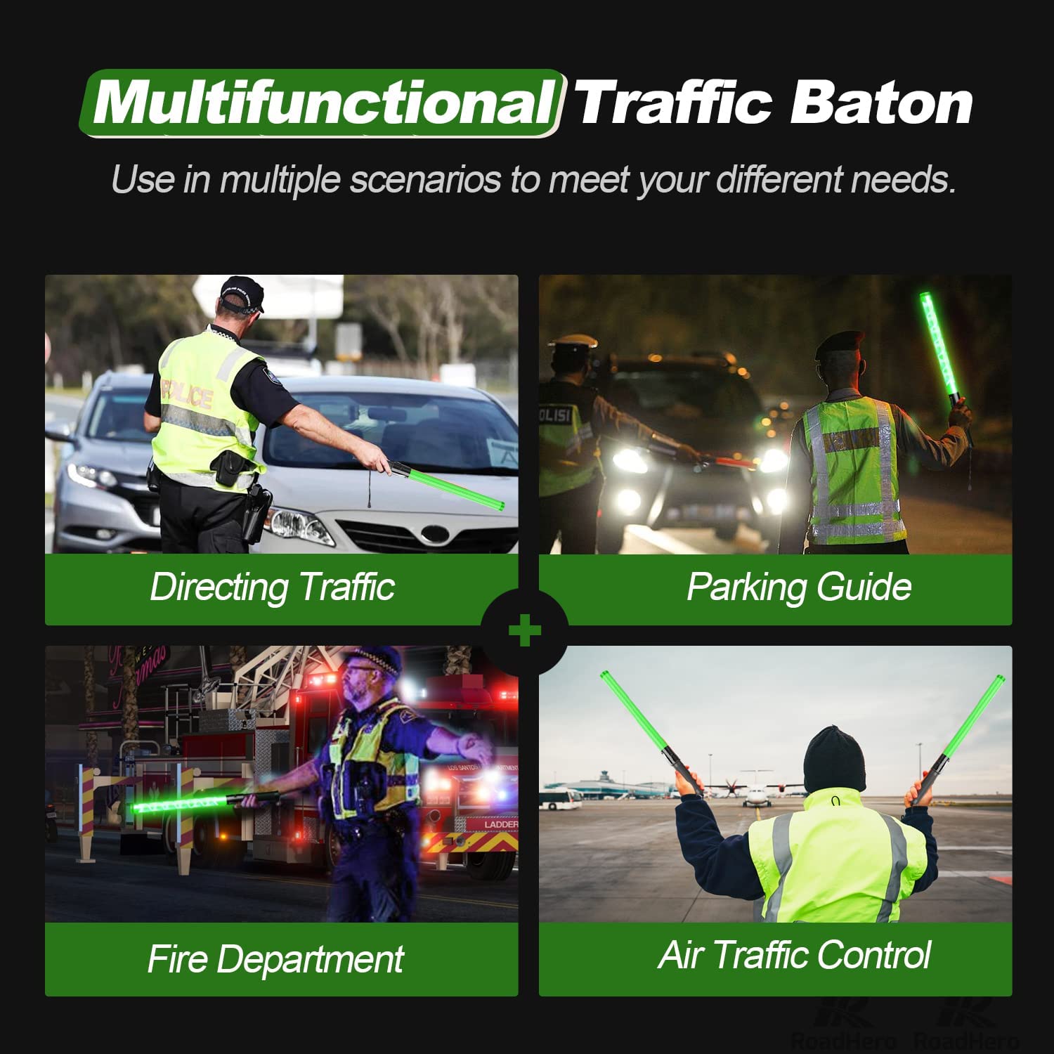 2 Flashing Modes: The traffic directing wand has 2 light modes, green light flashing and green light solid. Convenient for choosing the suitable modes according to the specific condition