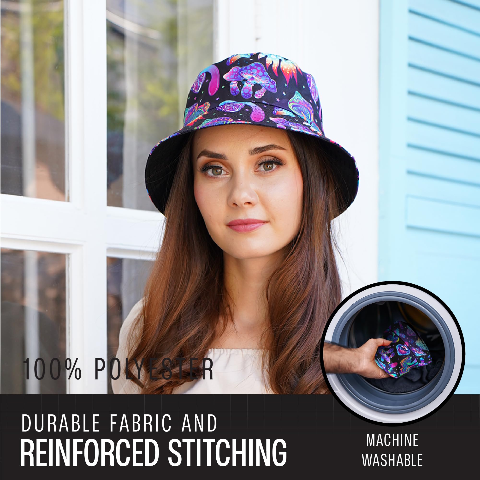 Elevate your fashion game with these fashionable and cute bucket hats for women, comes to life under UV light. Stylish and versatile bucket hat for any occasion.