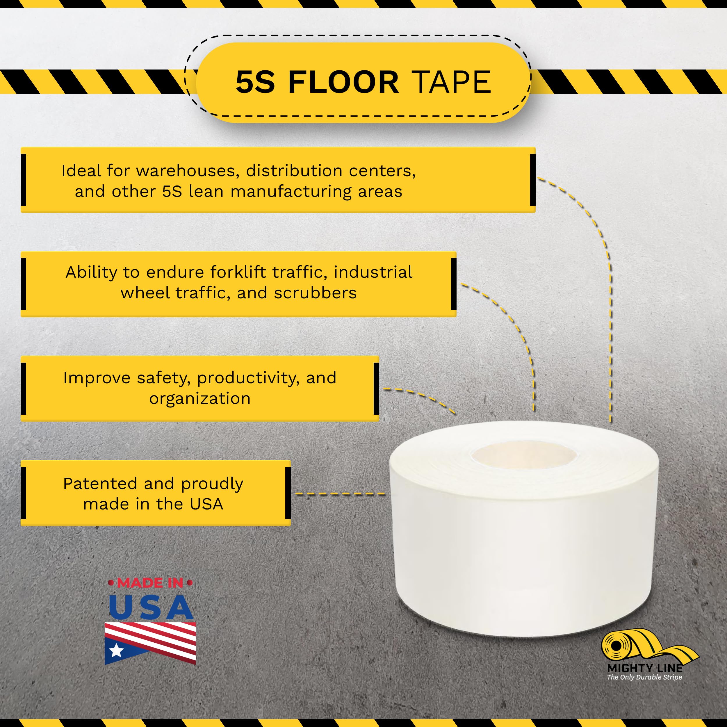 ENHANCED SAFETY COMPLIANCE: Our heavy duty marking tape meets OSHA and ANSI specifications for safety and vehicle route boundaries, crucial for workplace safety. Ideal for 5S, lean manufacturing, Six Sigma, and various floor marking applications.