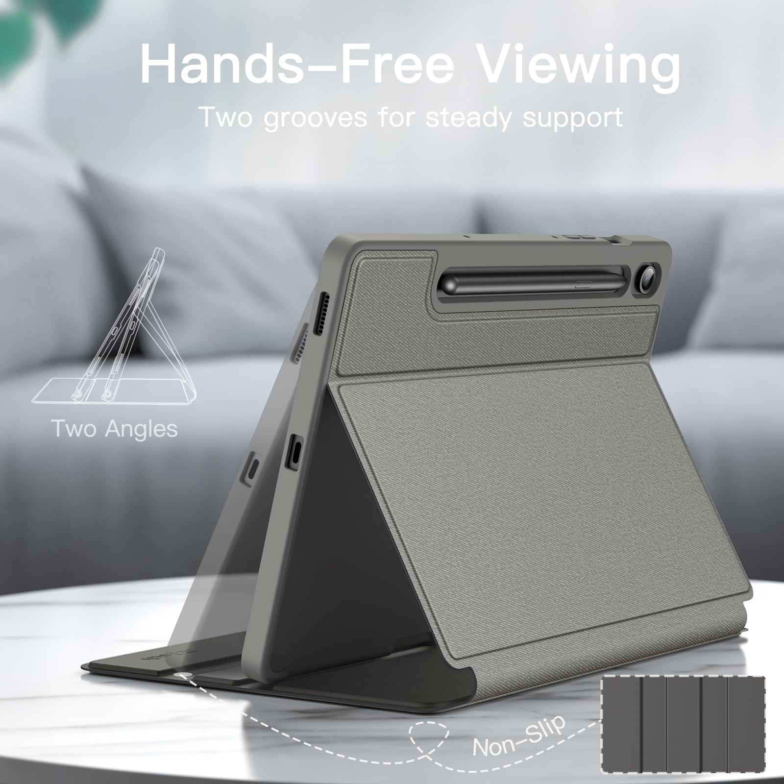 [Multi Standing Positions] The two anti-slip grooves of the front cover can prop up your device in different viewing angles. Moreover, wider cutouts make it easier to use the camera, speaker, buttons and other features