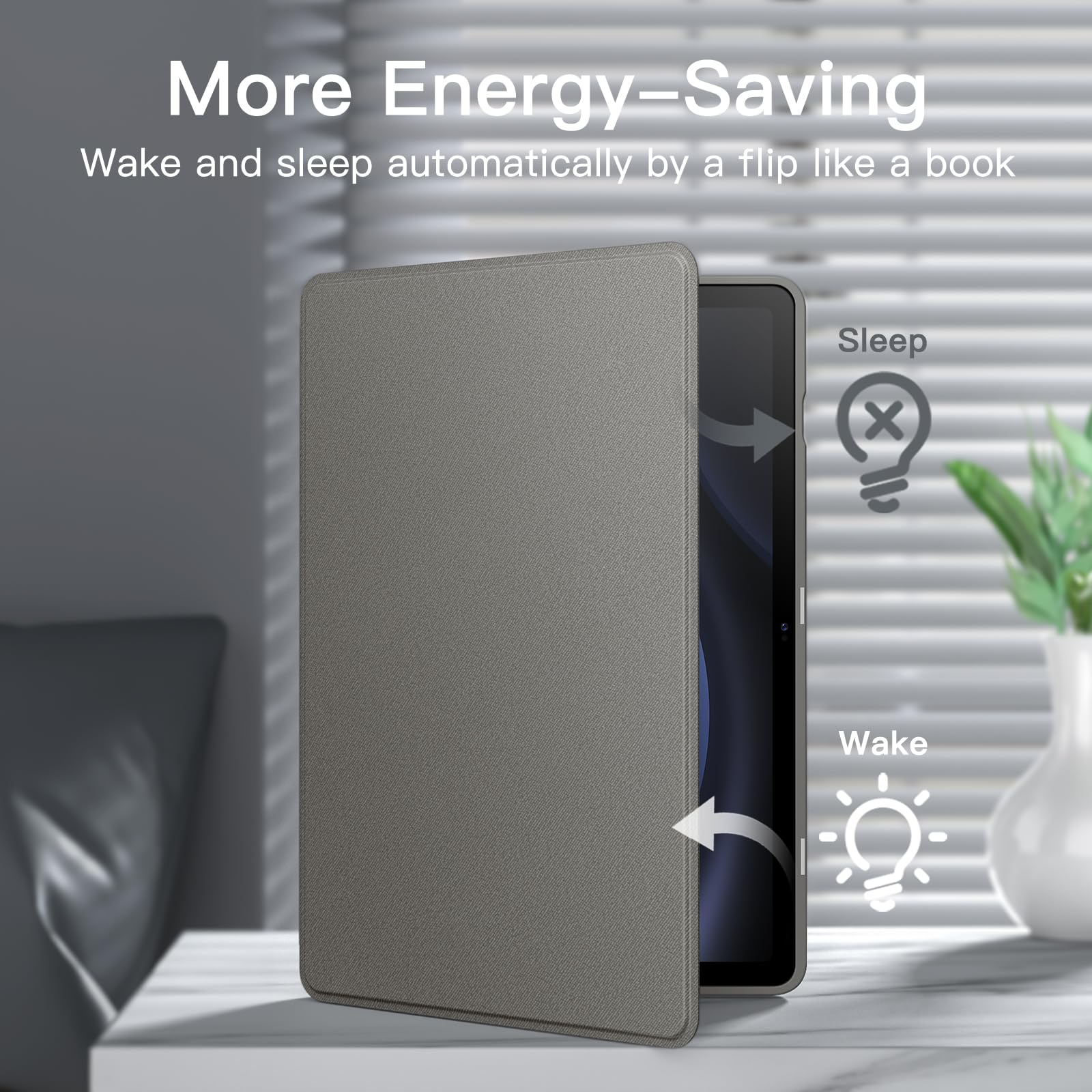 [Auto Wake/Sleep] Built-in strong magnet automatically wakes up your tablet and puts it to sleep just by a flip like a book. In addition, allow easy open and secure close