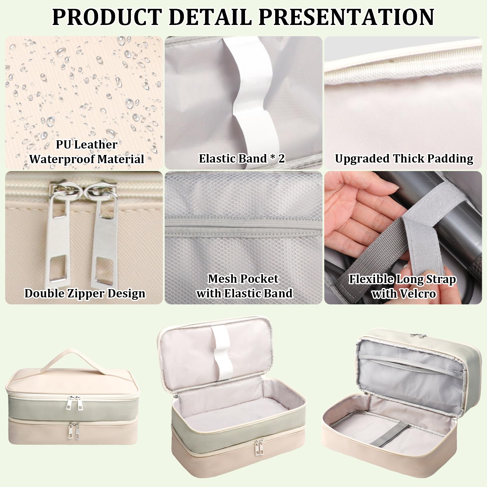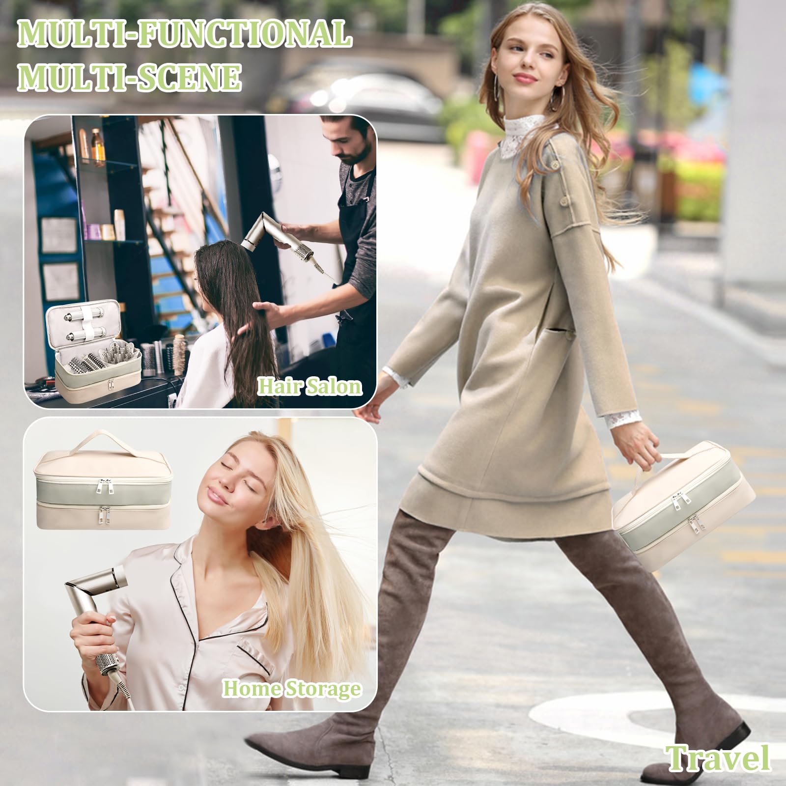 HIGH QUALITY - for Shark Flex Style Case: This double layered carrying case for shark flexstyle is made of high quality fabric and PU leather. The combination of high-grade gray and beige duplex leather has a certain aesthetic and fashion appeal. The inner layer has a soft texture that prevents scratches on flexstyle air styling & drying system and other accessories. The outer layer is scratch-proof, dust-proof and waterproof.