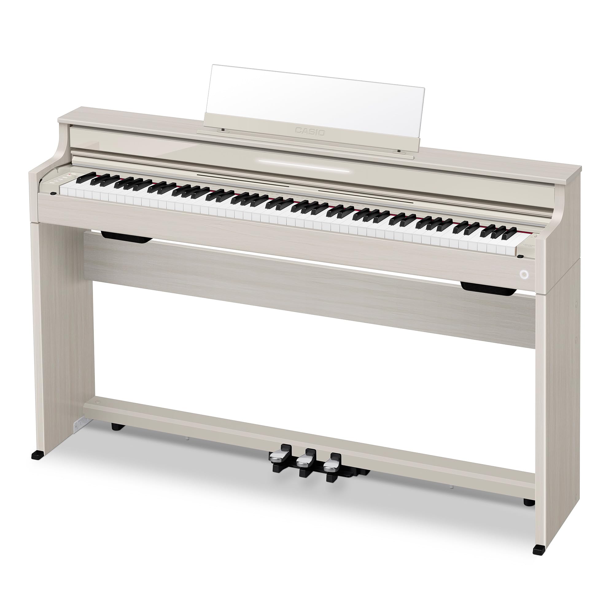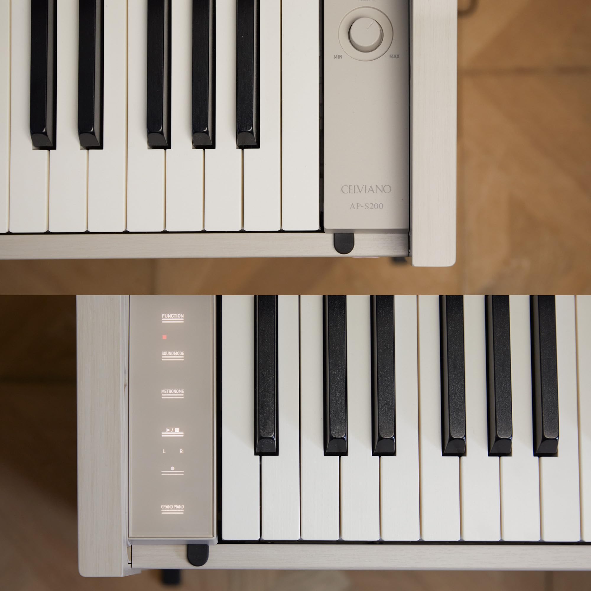 The Casio Celviano AP-S450BK is a slim, high-performance digital piano that delivers grand piano tone and expression in a contemporary cabinet. Its Smart Hybrid Hammer Action Keyboard (CELVIANO Edition) fuses wooden key construction with refined hammer mechanics and digital control, producing nuanced, expressive playability that reflects your touch and release. The wood-resin white keys and textured black keys offer a luxurious feel for demanding practice sessions. Driven by the Multi-Dimensional Morphing AiR Sound Source, the AP-S450 produces deep resonance, mechanical and string modeling, and smooth tonal shifts across velocity levels. The powerful 20W + 20W (4-speaker, 2-channel) sound system ensures your music fills the room with clarity. Bluetooth audio and MIDI (via WU-BT10 adapter) and dual USB ports make it easy to connect to apps, DAWs, or streaming devices. The included three pedals (damper, soft, sostenuto) with variable damper response give you full expressive control. A visual information bar, Instant RePlayer, and app integration via CASIO Music Space bring performance and learning features to your fingertips. Product Specifications: Number of Keys: 88 (Smart Hybrid Hammer Action) Touch Response: Yes (5 sensitivity levels + Off) Number of Tones: 26 built-in Amplifiers / Speakers: 20W + 20W; 4-speaker system (2 × 12 cm + 2 × 3.5 cm) Power Supply: AC Adapter AD-E24250LW (DC 24V) Power Consumption: 20W The Austin Bazaar bundle equips you with everything needed to start playing right away: an adjustable stand for stability, a bench for comfort, instructional book, online piano lessons, Austin Bazaar instructional DVD to help get professional tips and guidance while learning, and a polishing cloth to keep your piano looking pristine. This complete setup lets you focus on making music from day one.