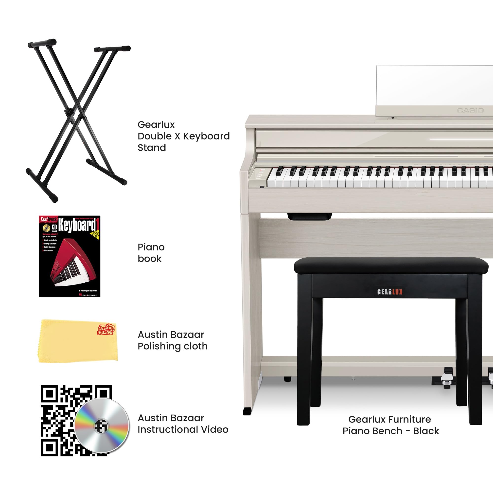 COMPLETE AUSTIN BAZAAR BUNDLE: The Austin Bazaar Bundle equips you with all the essentials to start playing right away: an adjustable stand for stability, a bench for comfort, instructional book, online piano lessons, Austin Bazaar instructional DVD to help get professional tips and guidance while learning, and a polishing cloth to keep your piano looking pristine