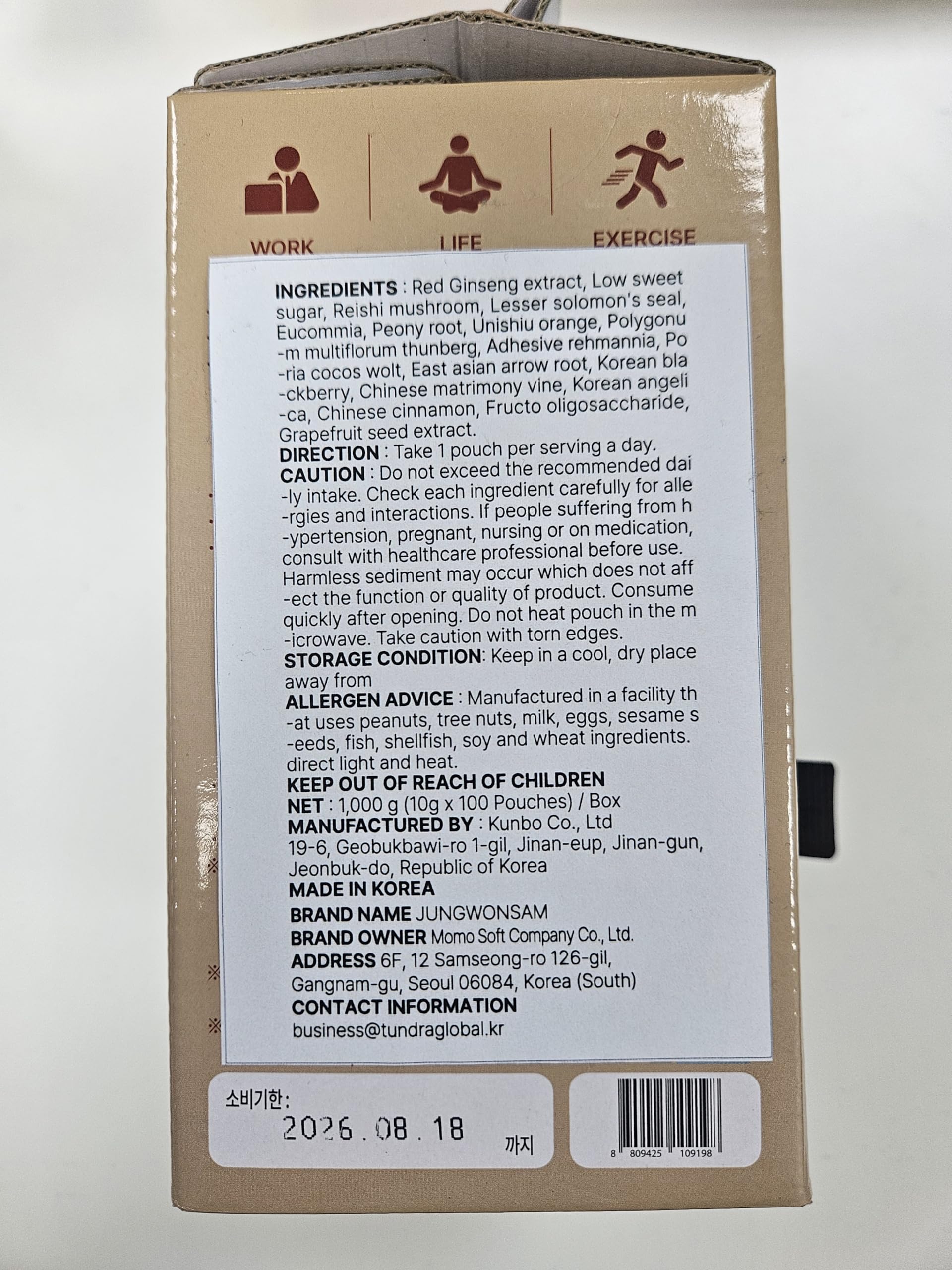 🛡️Manufactured with Care: Produced in GMP and HACCP certified facilities, Jungwonsam ensures that all products meet the highest safety standards, with FSC certification highlighting our commitment to sustainability.