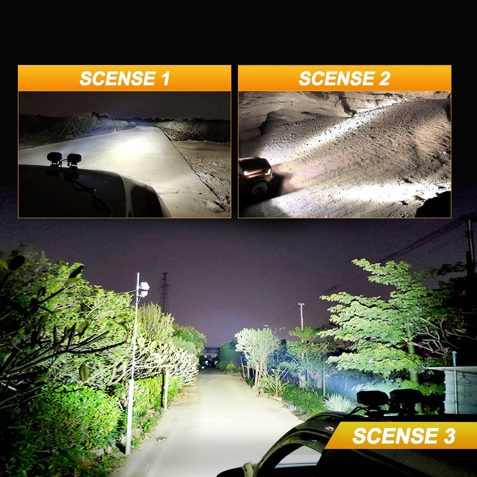 High Intensity 5050 Chip for Super Brightness. Compared with ordinary 3535 chip, our 4" square pod light have 60W/Pair 5050 LED chips, equipped with 12D optical lens, can provide 3600lm 120° ultra wide flood beam and 6200k cool white light. Outstanding performance will light up everything you need to see!