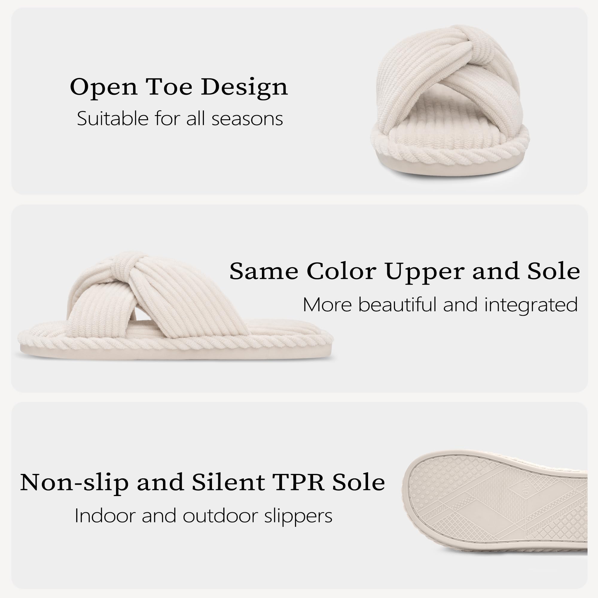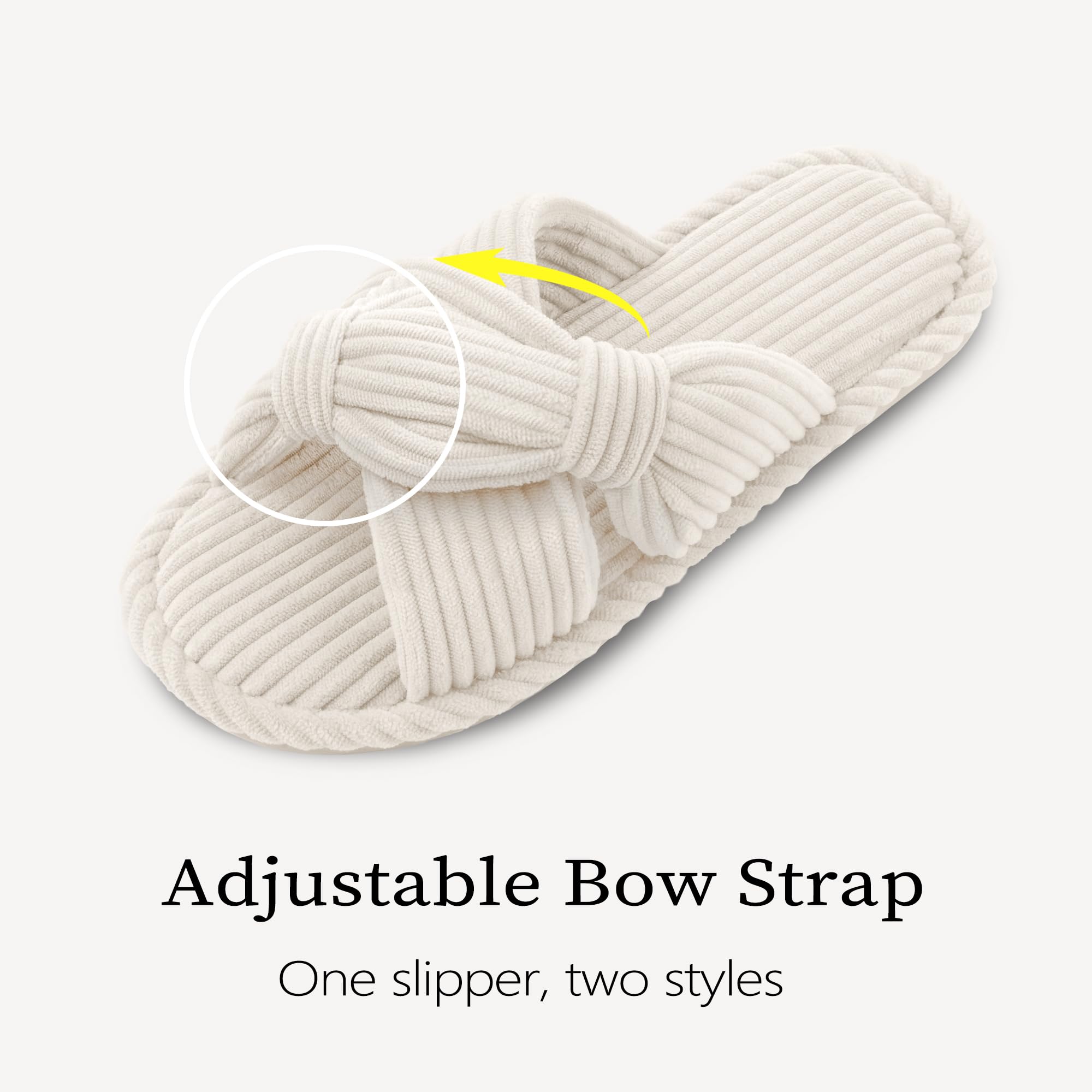 Unique Design: The classic crossband design with an open-toe style exudes timeless elegance, securely wrapping around your feet. The adjustable bow adds a touch of uniqueness and charm. Suitable for women of all ages to pair with various outfits, these slippers are a fashionable must-have in any shoe collection.