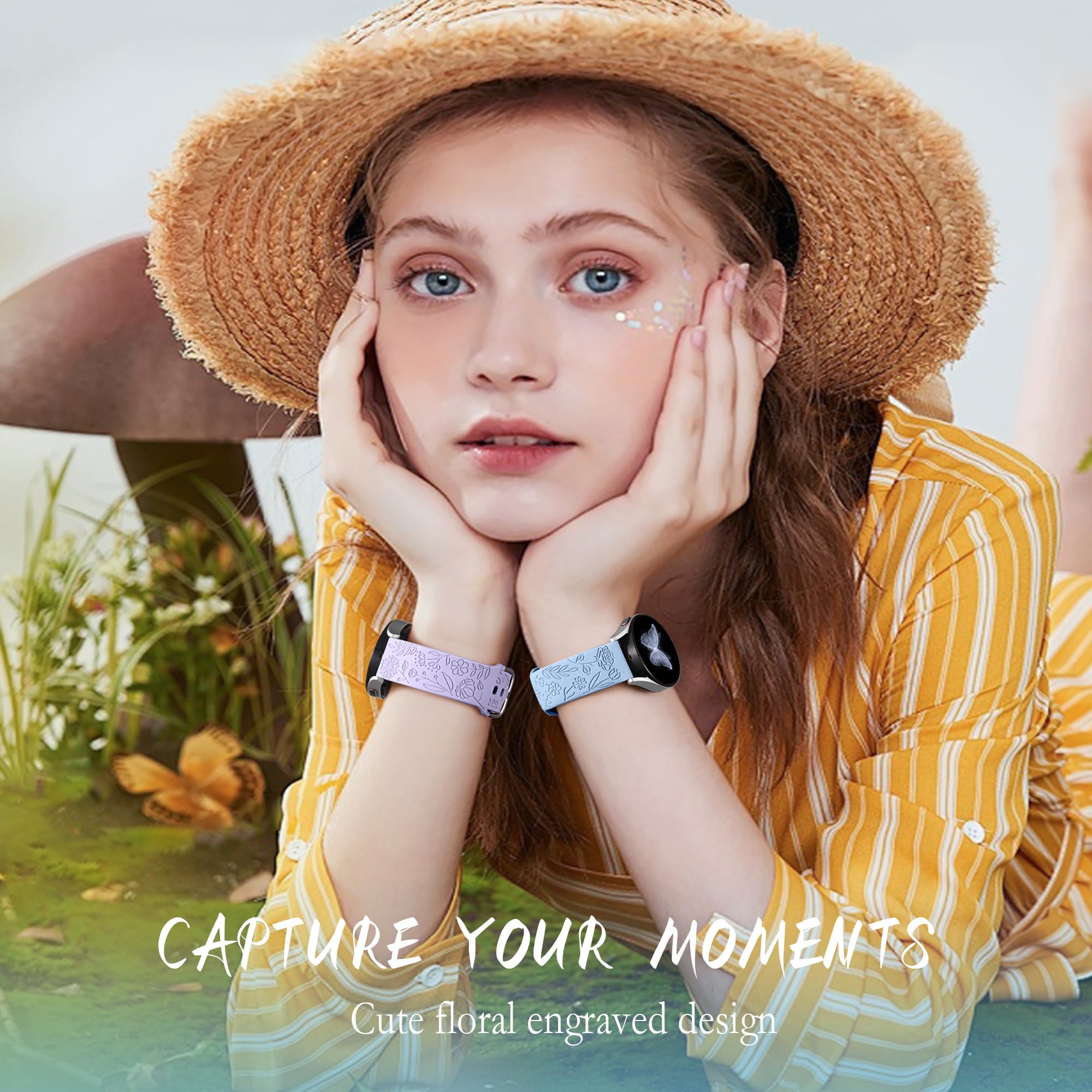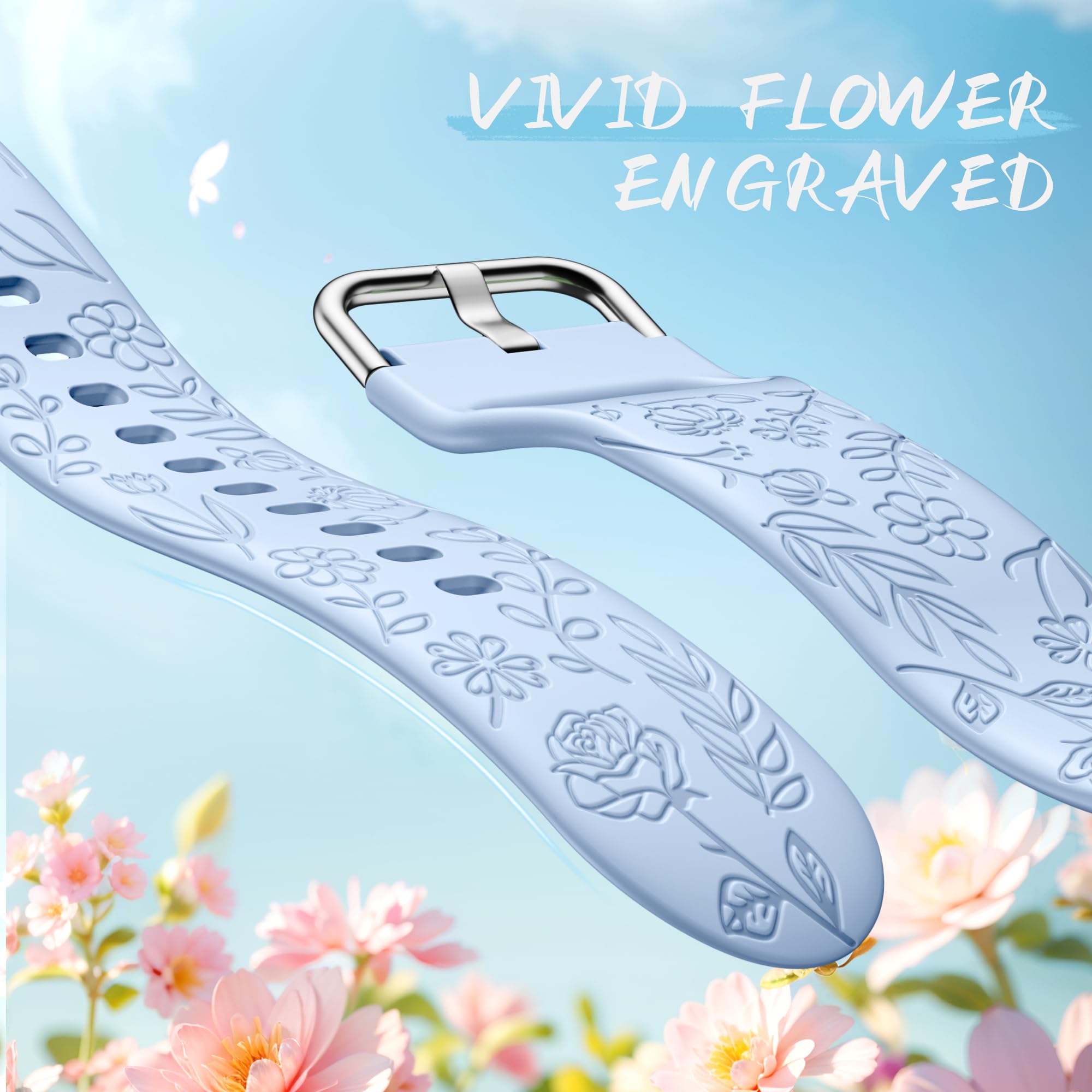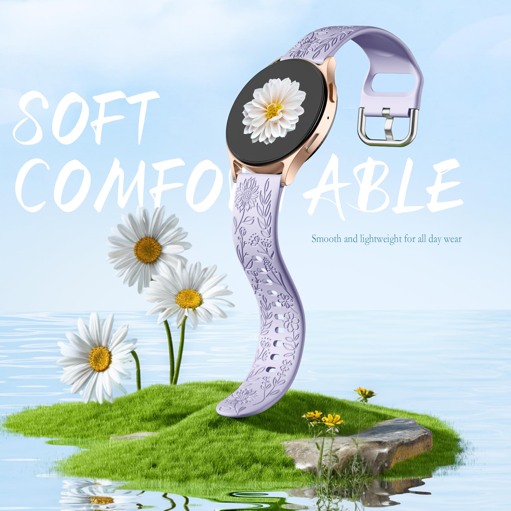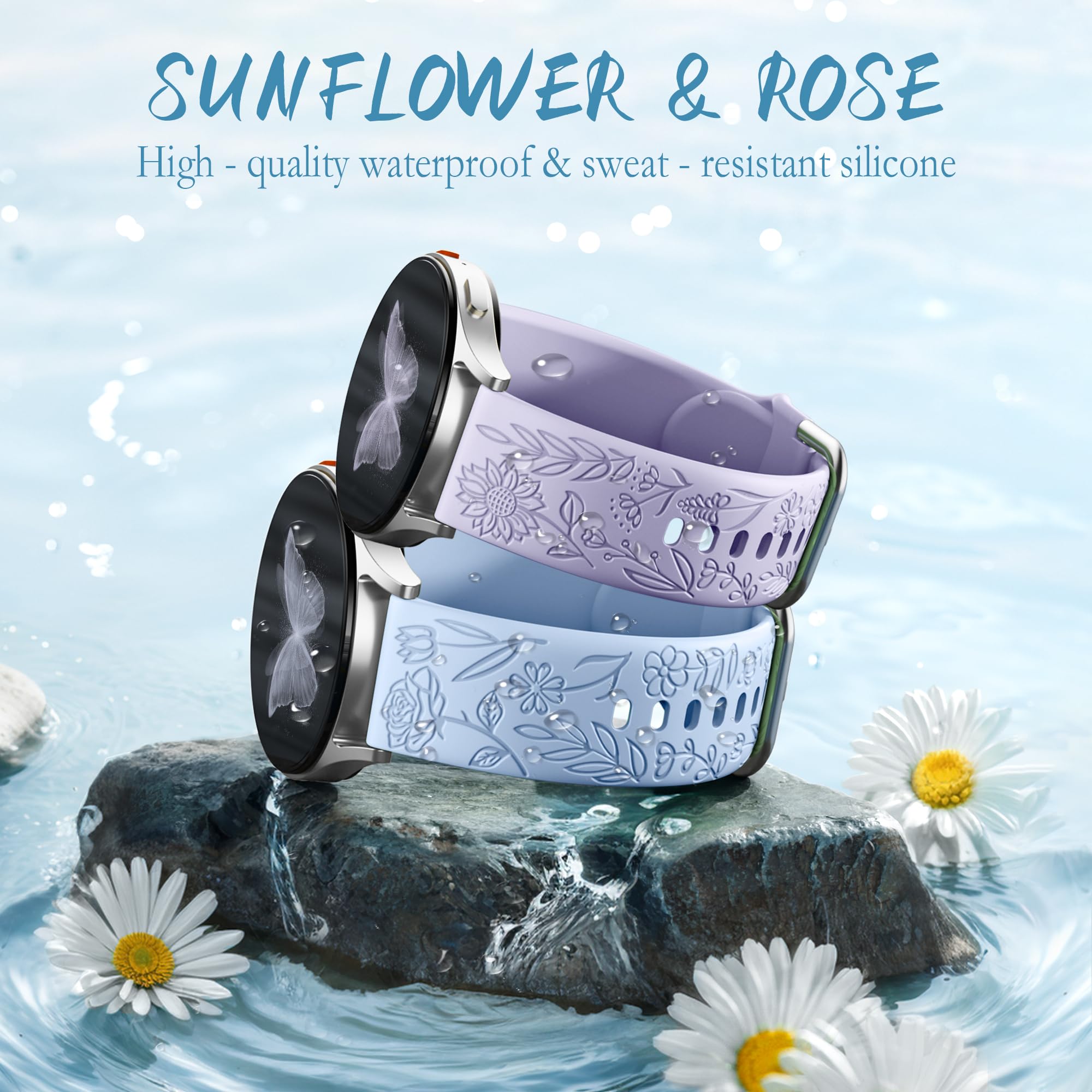 Cute Floral Engraved Design: The Galaxy Watch 7 Band features precision laser engraving technology, creating vivid and lifelike floral patterns that add 3D elegance and a luxurious tactile feel. Perfect for any occasion, pretty roses bring timeless sophistication for formal events, while vibrant sunflowers radiate youthful energy for casual wear. This stylish Samsung watch bands for women is a beautiful floral print that celebrates and love nature, adding a personal look to your daily outfit