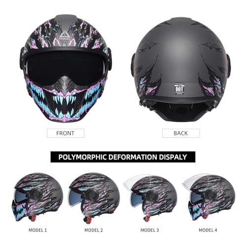 【CONVERTIBLE DESIGN】This helmet offers a versatile design that smoothly transitions between a full-face and open-face configuration, providing flexibility to accommodate various riding conditions and personal preferences