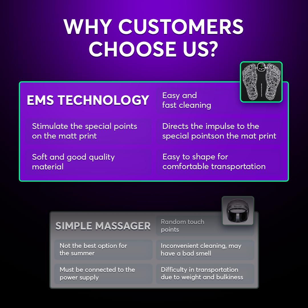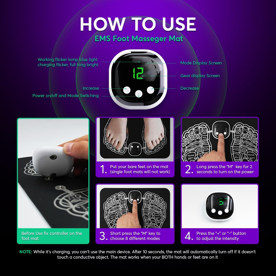 COMFORT & MUSCLE IMPROVEMENT - EMS foot pad is designed to activate and promote muscle wellness, improving overall muscle performance. With its various modes, there is one that suits everyone's preferences: make sure you find the one that best suits your needs!