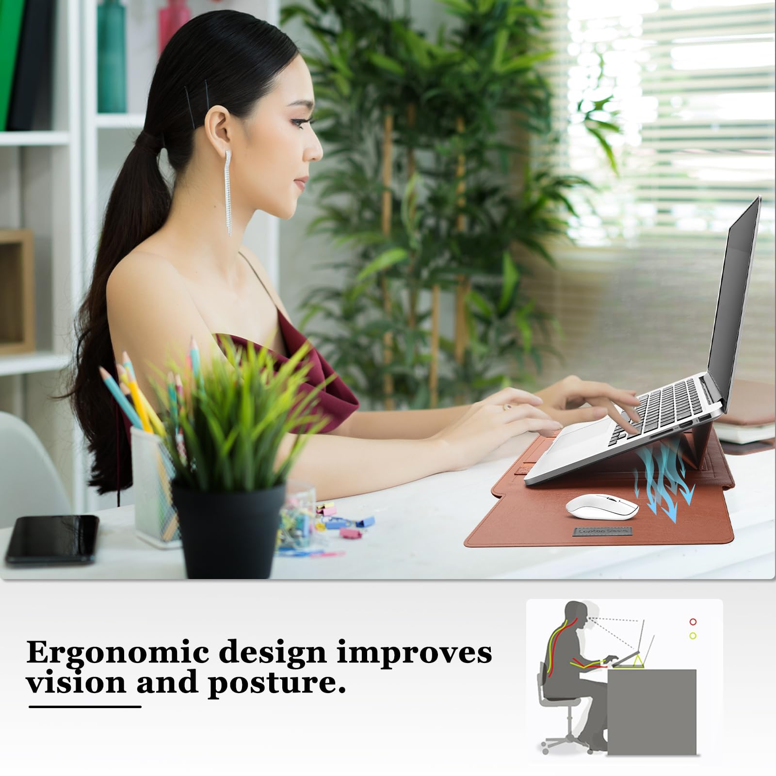 【Innovative 3 in 1 Funtion】This laptop sleeve combines a laptop stand, laptop protective, and mouse pad in one. The flap doubles as a mouse pad, and the stand features a foldable design. Compact, lightweight, and stylish, it's perfect for travel or office use.