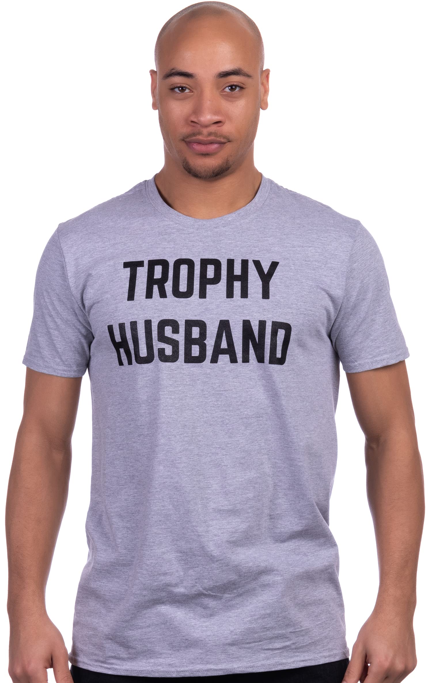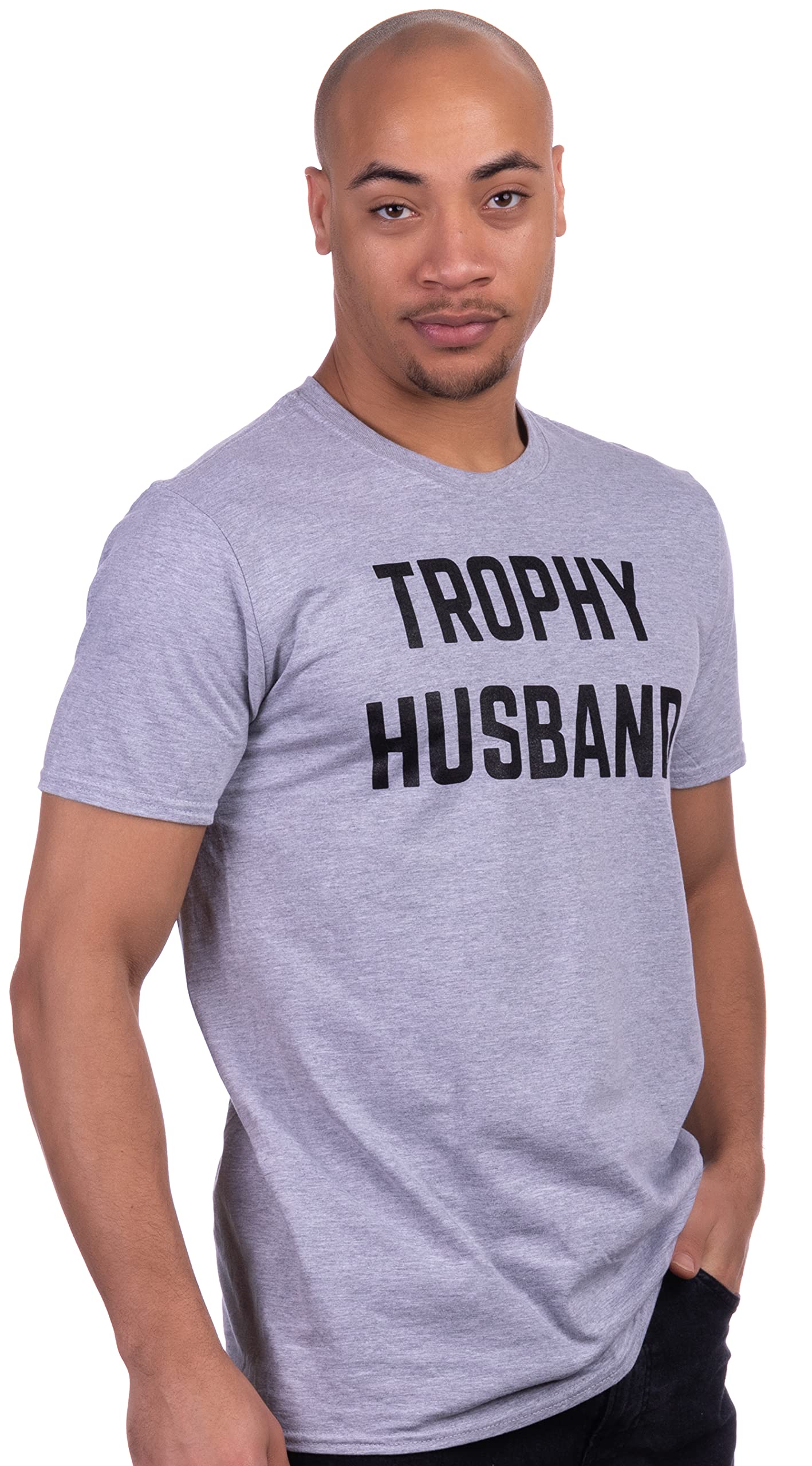 TROPHY HUSBAND |Celebrate that handsome stud with our iconic "TROPHY HUSBAND" tee shirt. Whether celebrating your hubby at an anniversary, wedding, his birthday, or just to say you care, you're sure to get a big laugh with this tshirt!