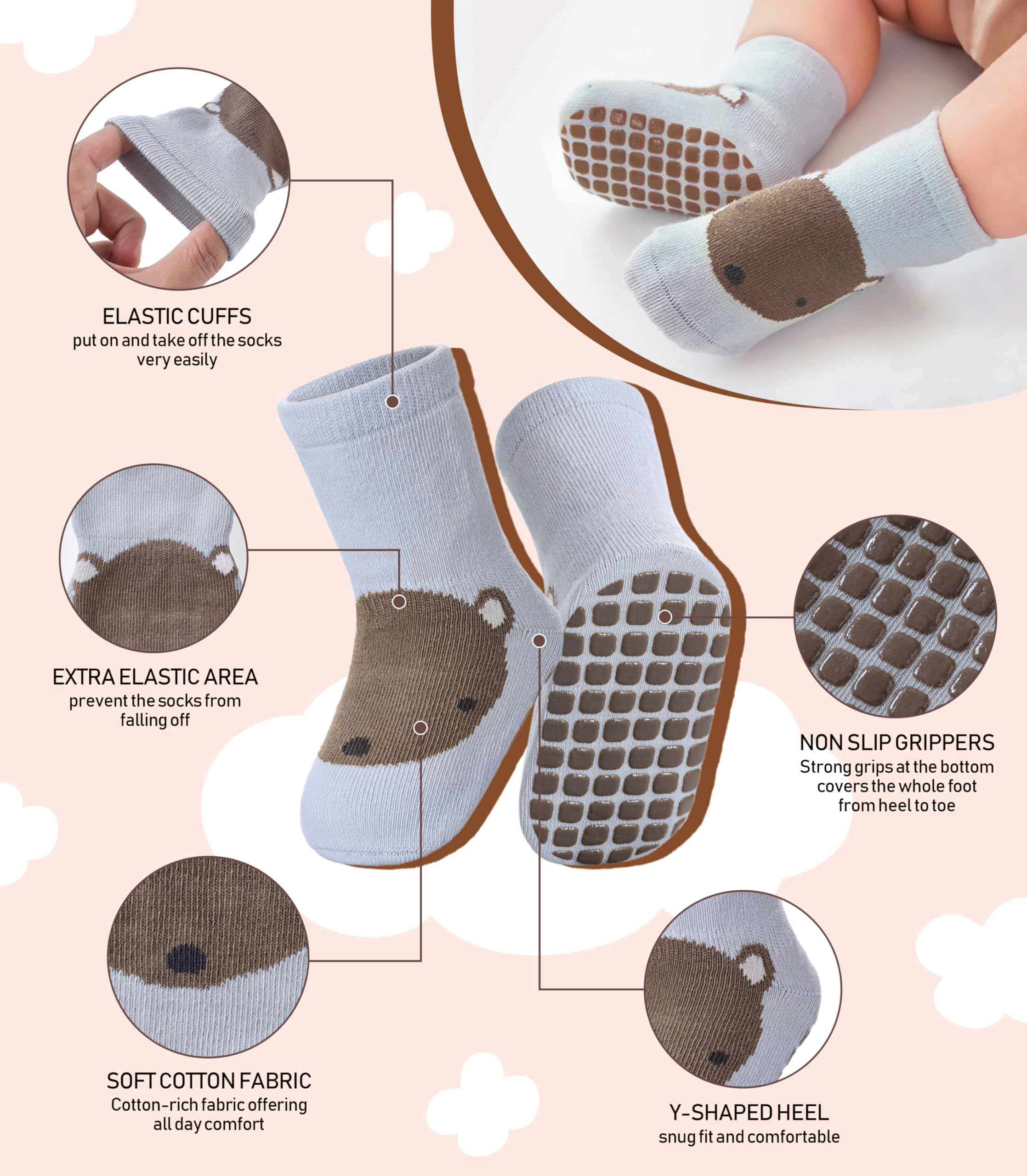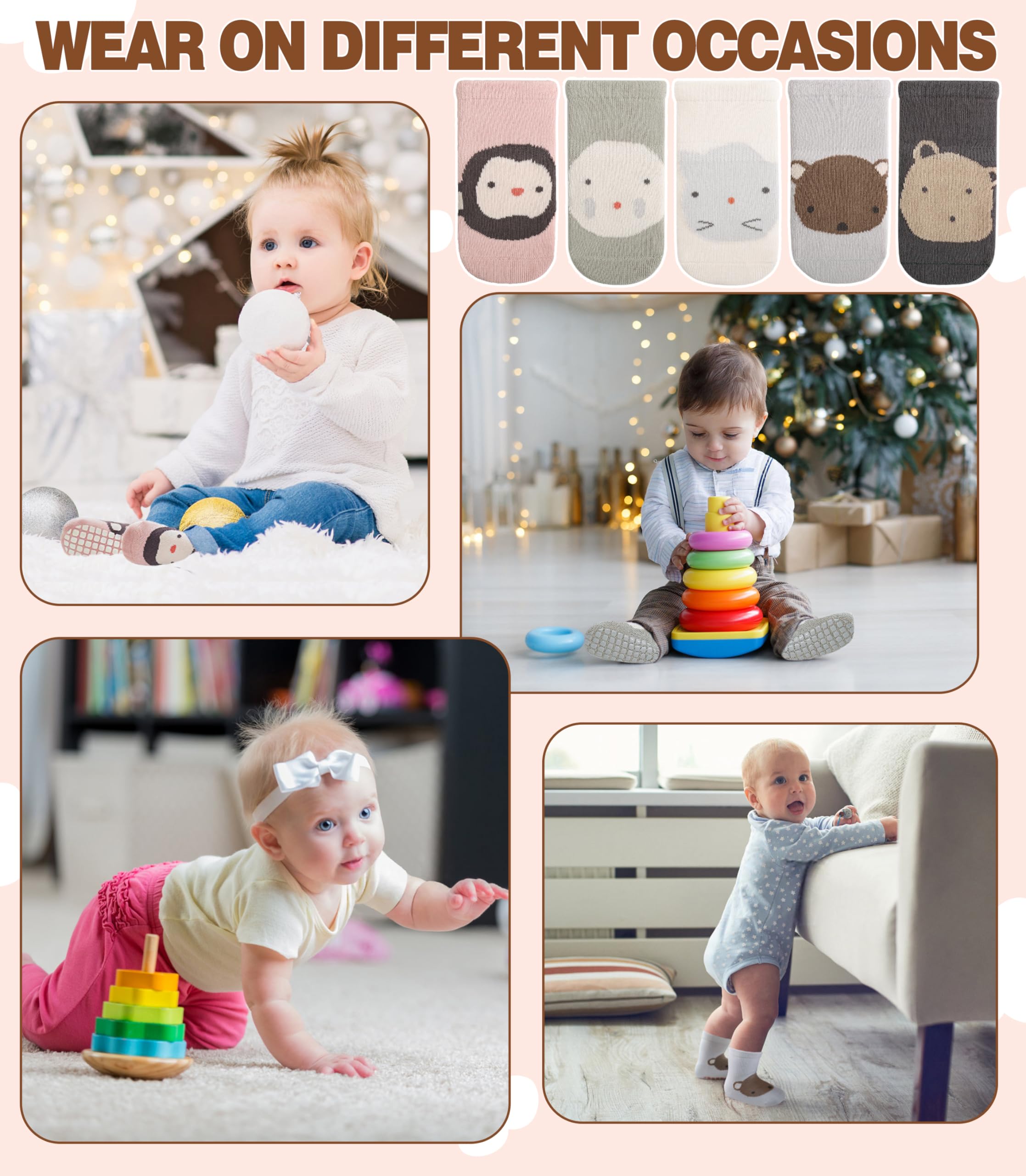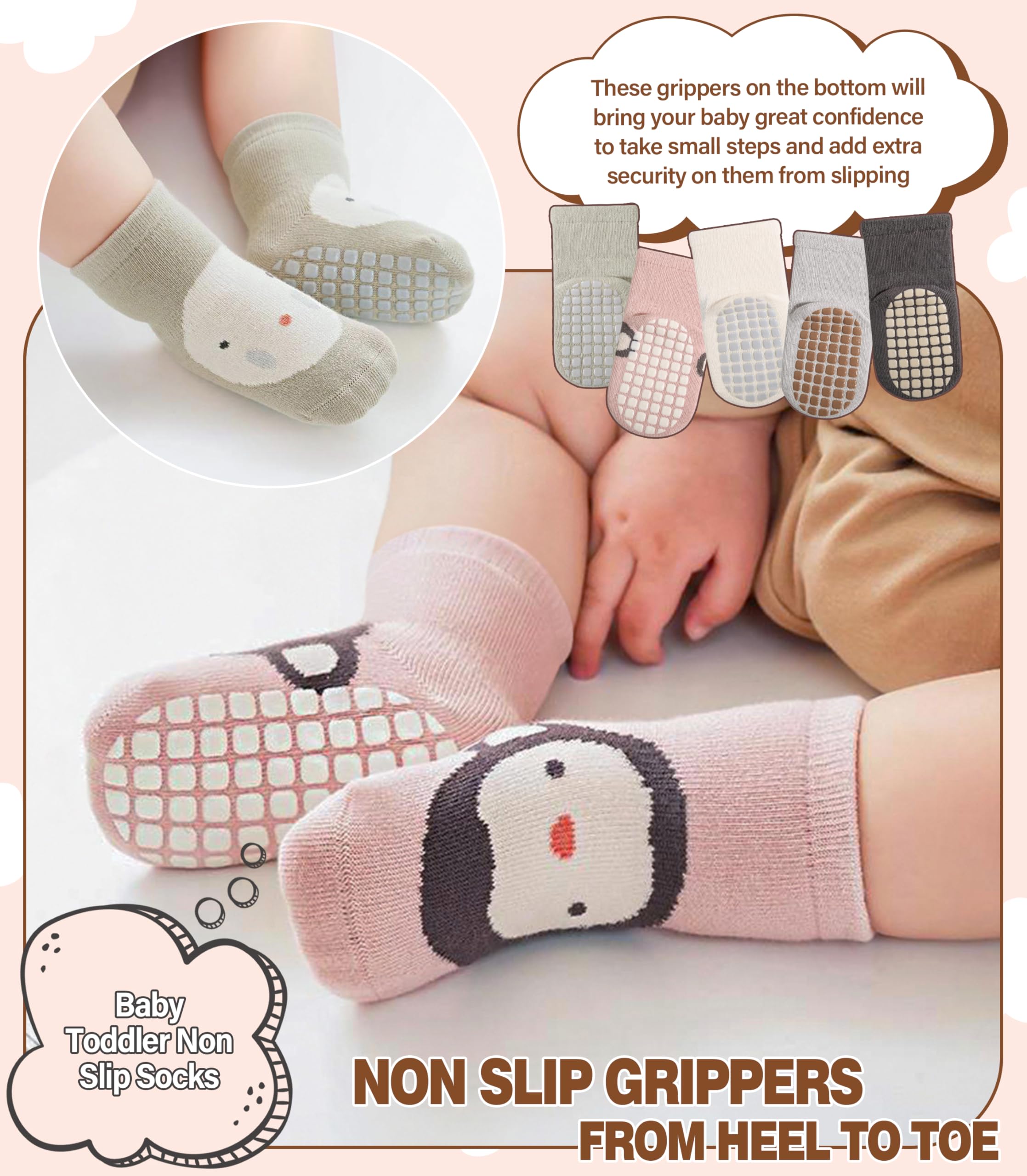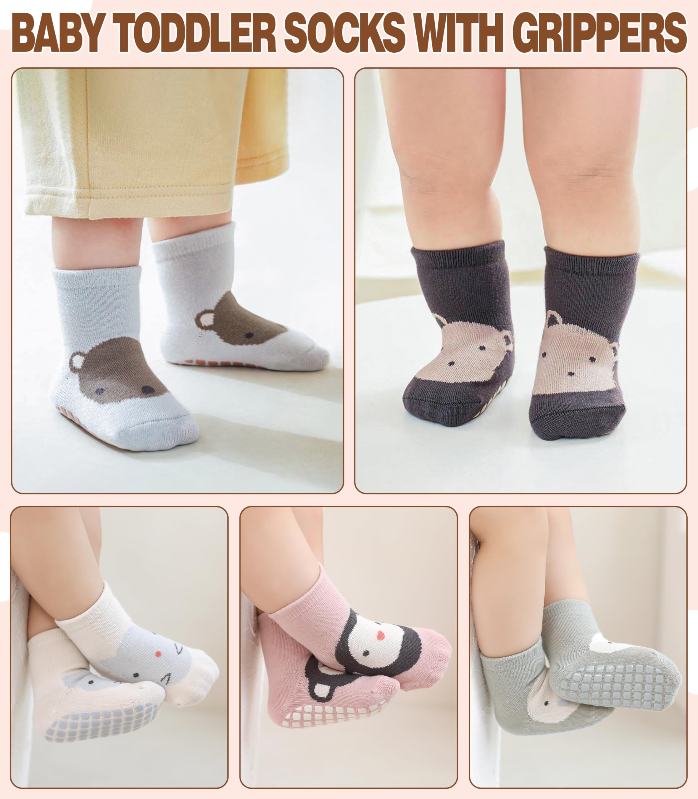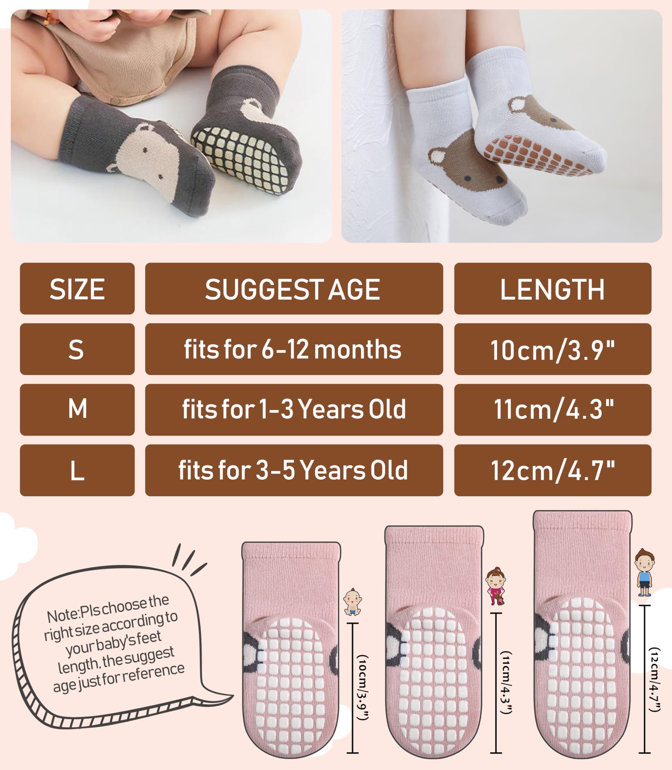 SUITABLE for MANY OCCASIONS - Medium thickness makes these baby toddler girl boy non slip socks suitable for all seasons and any occasions. Can fit in little shoes easily, suitable for all weather, easily match with multiple outfits. These baby toddler grip socks will keep little toes warm for baby toddler, elastic cuff and toe make baby's feet have a comfy experience.