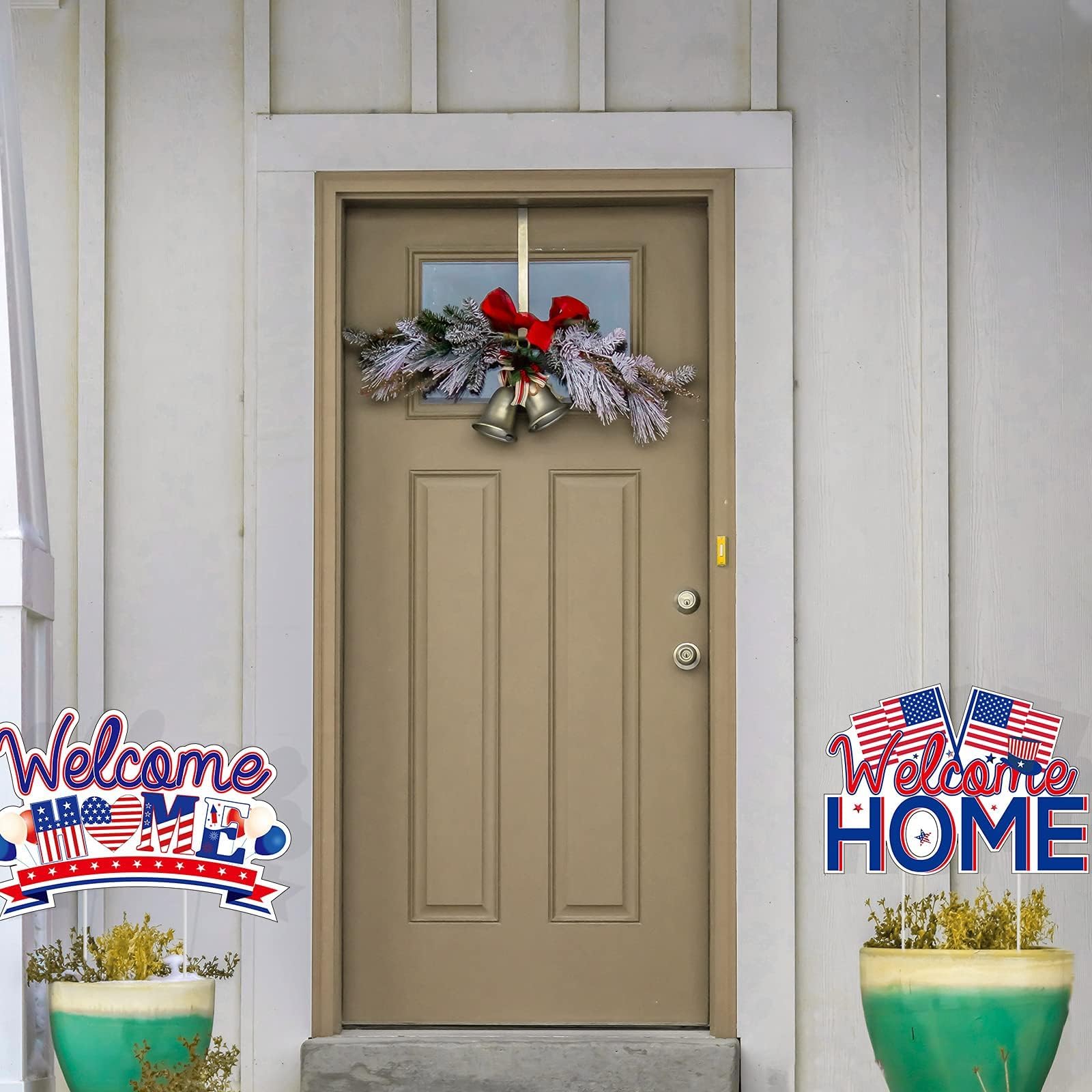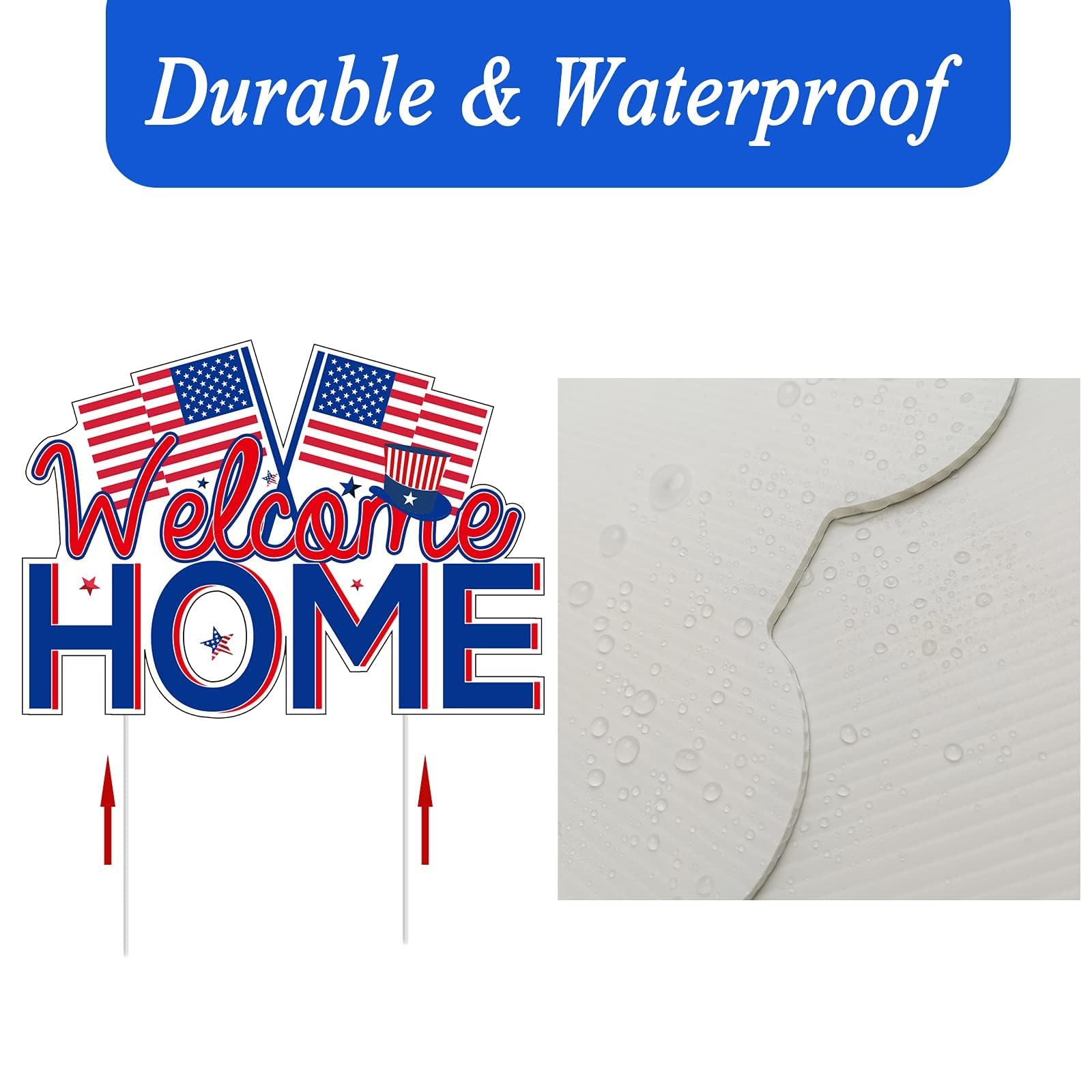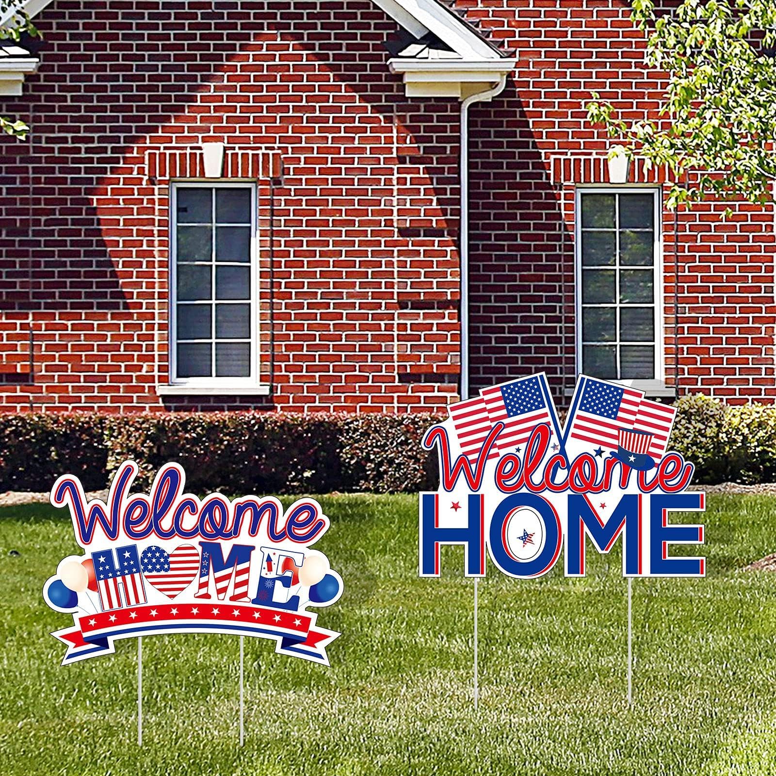 【What You Will Receive】You will get 2 pieces of welcome-to-go home lawn signs designed in vibrant patriotic patterns and eye-catching ‘WELCOME’. You will also get 4 pieces of hard stickers to fix the back of the yard sign and 4 pieces of sturdy stakes to fix the homecoming yard signs on the ground.