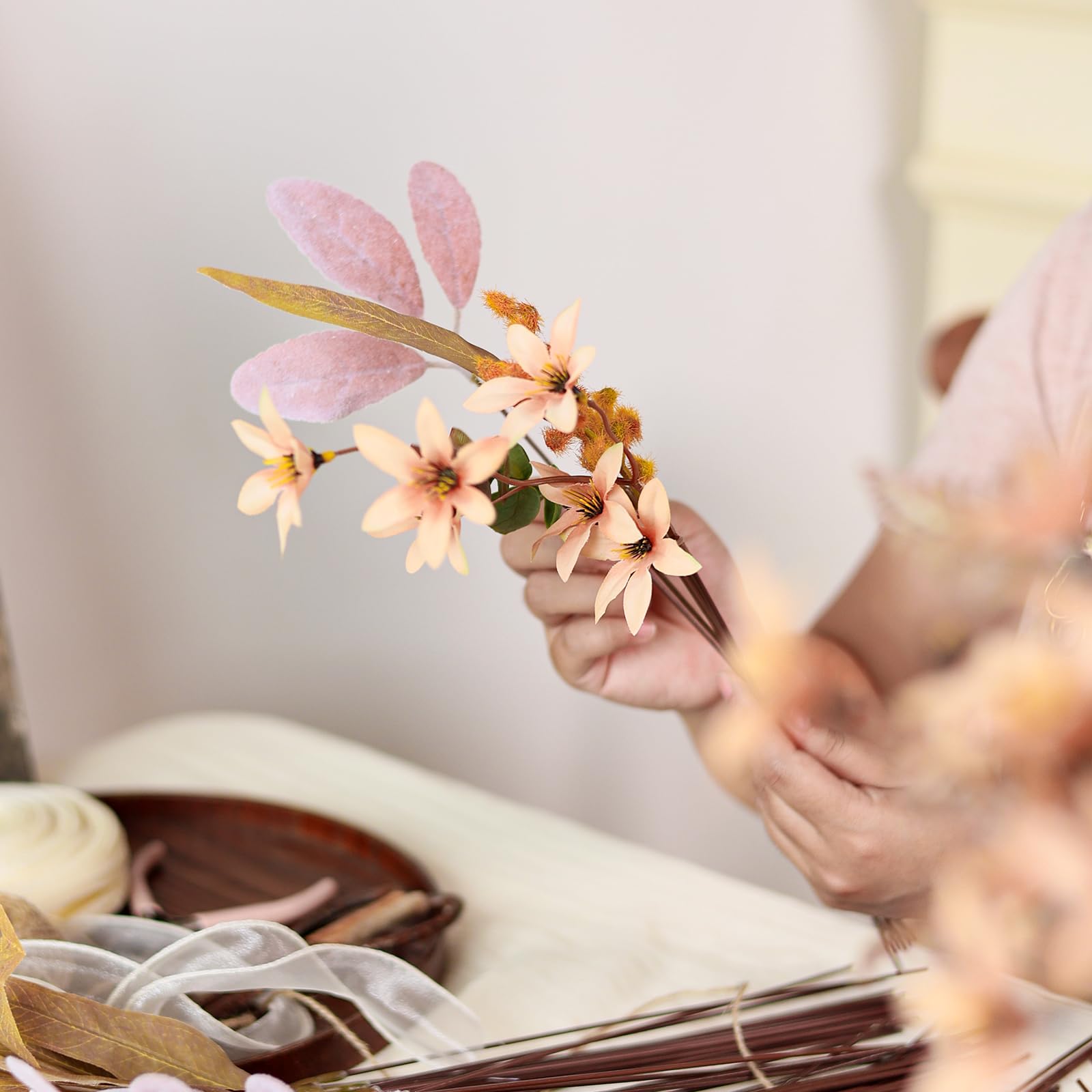 【Quality materials】: The leaves and flowers are made of quality silk and plastic, and the stems are made of wire, so you can bend or cut them as needed. These eucalyptus leaf stems and artificial flowers are made of quality materials that are durable enough that you don't have to worry about wilting or fading or spend time watering and caring for them.