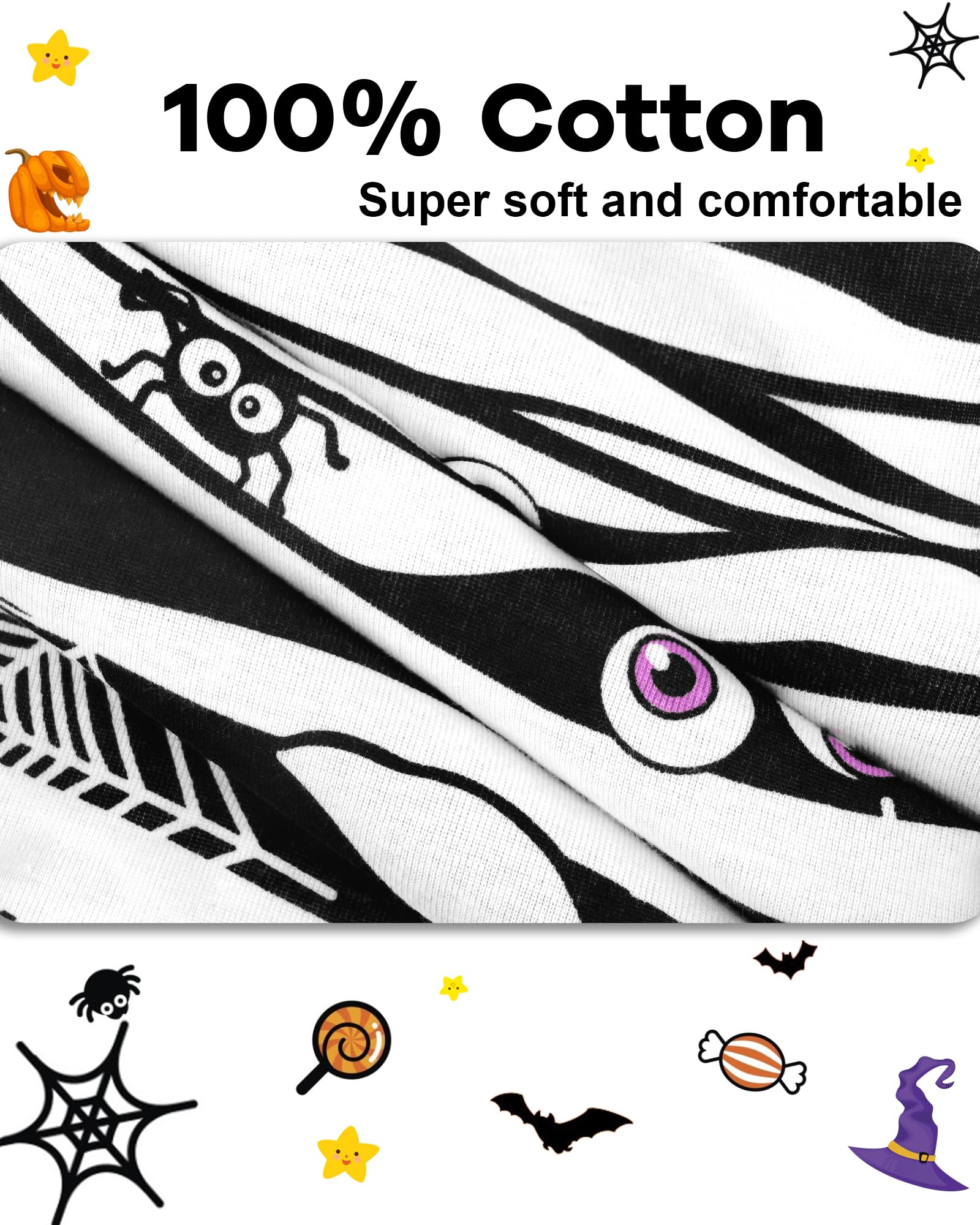 Cool Prints & Perfect Choice: Boy's favorite halloween pjs outfits' prints, including mummy, pumpkin, skeleton glow in the dark, ghost and so on. We have a professional design team, making sure the clothes look cute and unique on your little one, every toddler boy's favorite present on halloween or birthdays. And there are comfy boys jammies for halloween party, playing, or sleeping at home