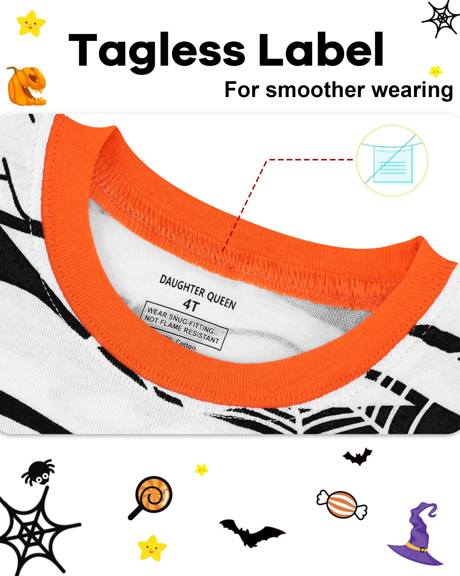 Caring Design: Tagless label – avoids irritation caused by traditional labels and protects your little one's delicate skin. Crew-neck is easy for toddlers to wear or take off, and they feel comfortable when wearing it. Elasticized-waistband, not only keeps everything in the right place but also ensures a pleasant night that fits just right, keeping them comfy without being too tight