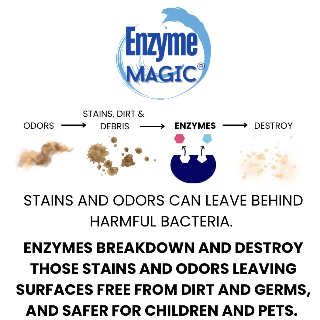 Powerful plant-based enzyme formula destroys the stains and odors - deep in the carpet, the septic tank, floors, everywhere!