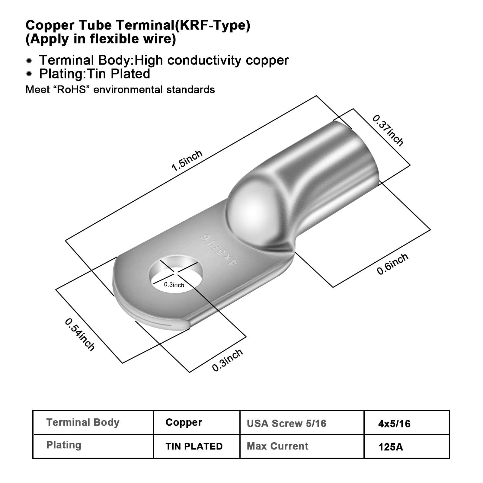 Each cable has 5/16” ring terminal (already crimped), allowing it to fit over battery disconnects/switches.
