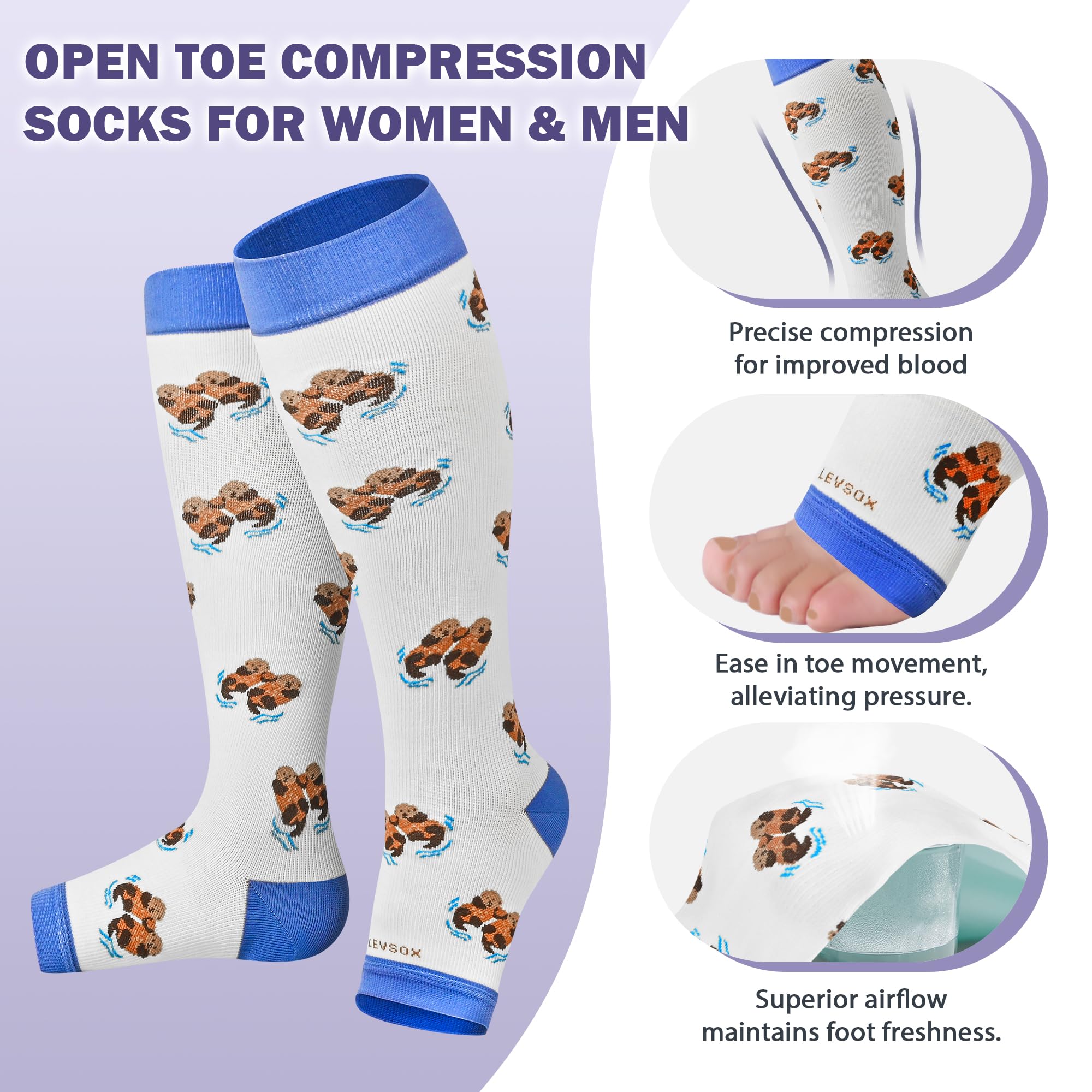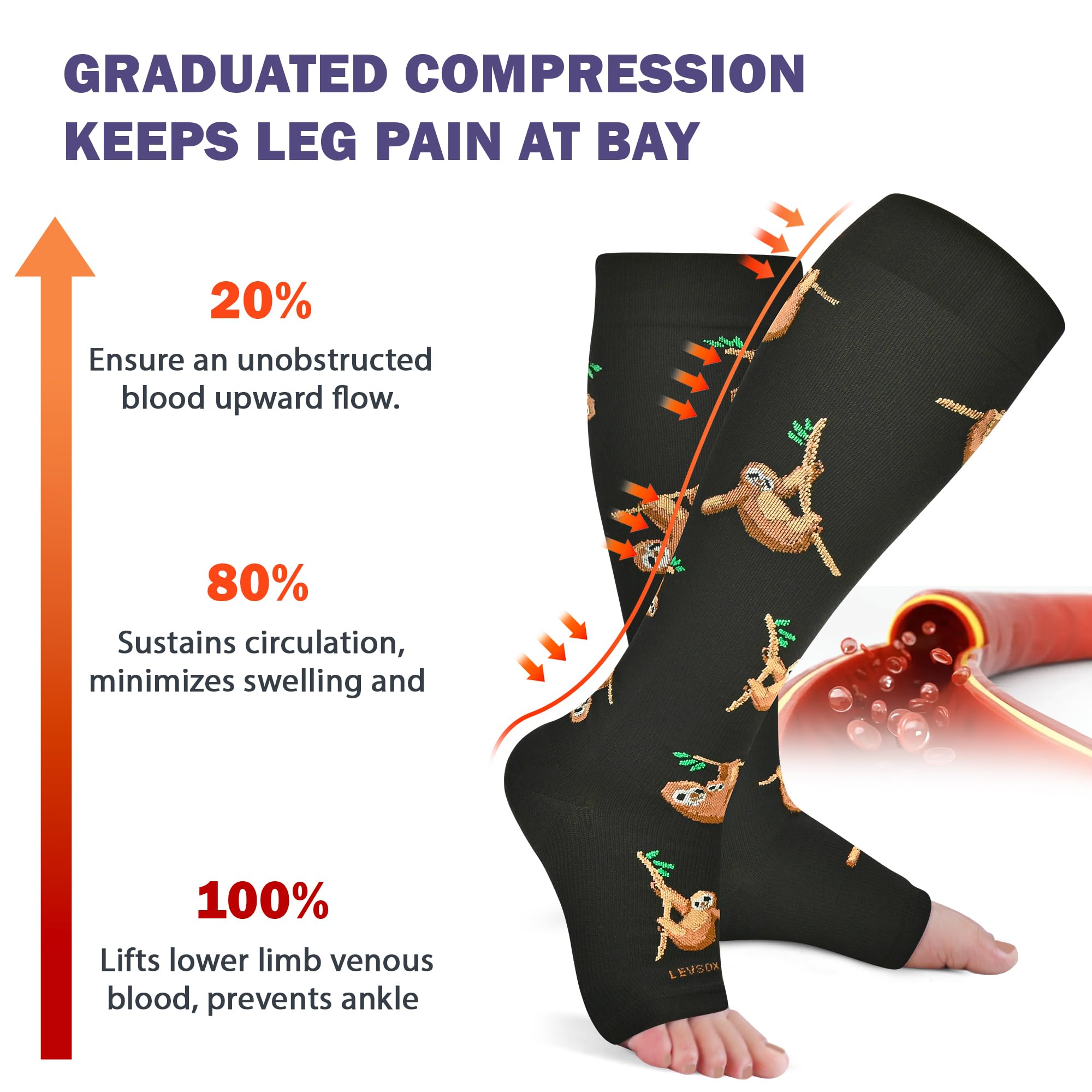 Toeless Compression Socks: Experience remarkable benefits with our compression socks, effectively enhancing blood circulation and reducing swelling. Specifically designed to alleviate symptoms of edema, lymphedema, neuropathy, surgery recovery, hypertension, muscle pain, fatigue and varicose veins. Embrace revitalized and refreshed legs with LEVSOX socks