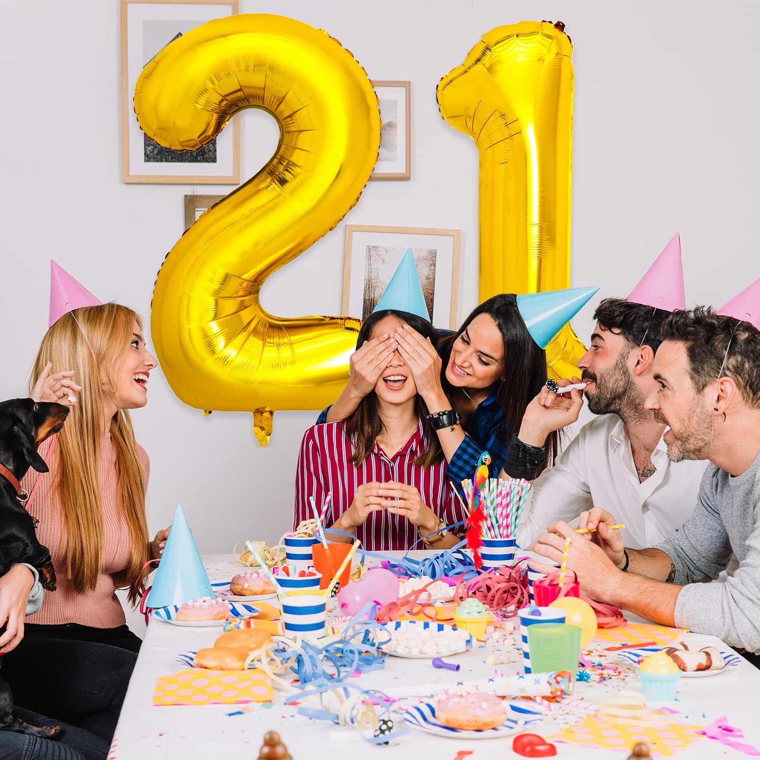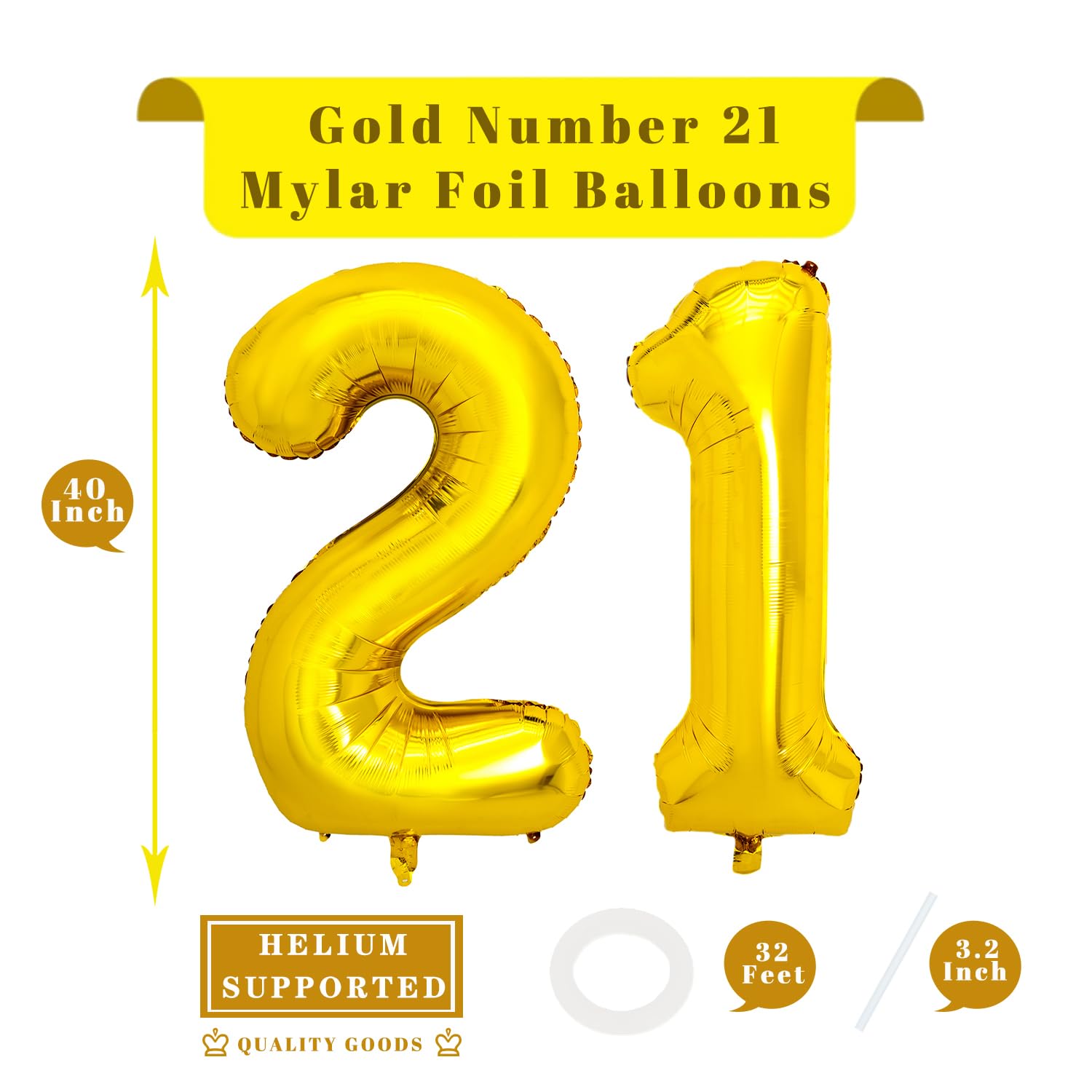 【What You Will Get】2 Pieces 40 Inch Gold Number Balloons: No.2 gold number Balloon + No.1 gold number Balloon, 1 slender straw, and 1 roll 10m ribbon. The Large Number 21 Balloons is perfect for 21st birthday anniversary party decorations. The jumbo 21st Birthday Balloons will help you create a strong birthday atmosphere in your house and make you have an unforgettable birthday party.