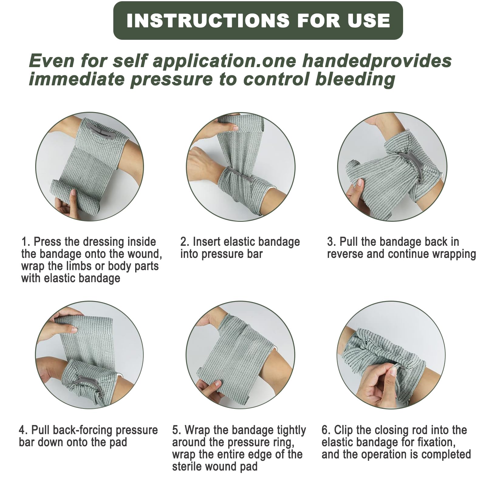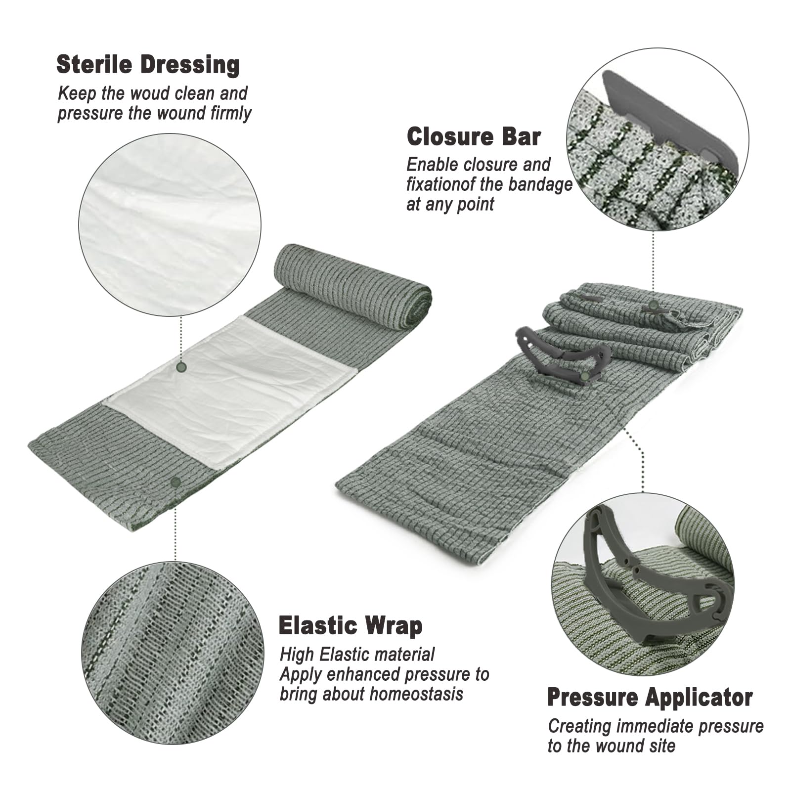 MULTIFUNCTIONAL FIRST AID DEVICE: The Israeli compression bandage can be applied to multiple parts of the body including arms, legs, torso, head, and anywhere else. It can even be used as rings, splints, and a simple tourniquet in an emergency. This pressure-integrated device is equivalent to a small emergency system and is widely used by the military, first responders, EMS, law enforcement, commercial and industrial sites.